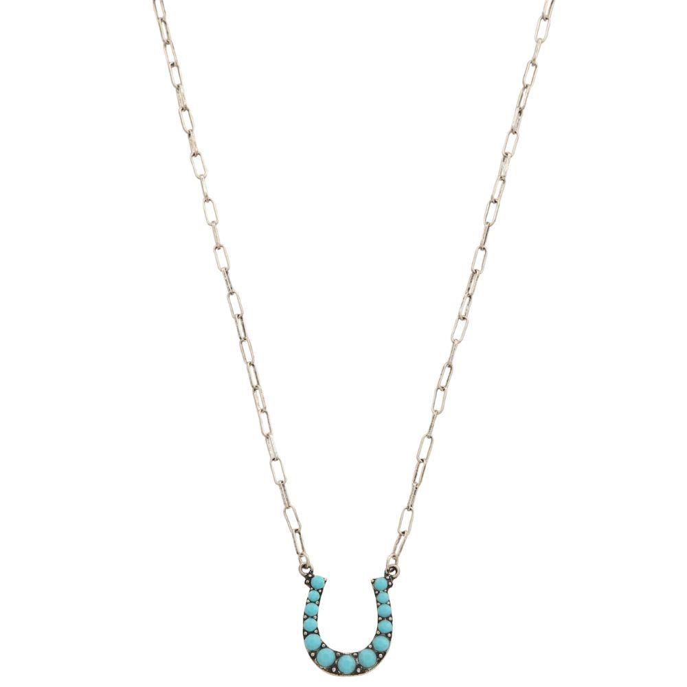 WESTERN HORSE SHOE TURQUOISE BEAD CHARM NECKLACE