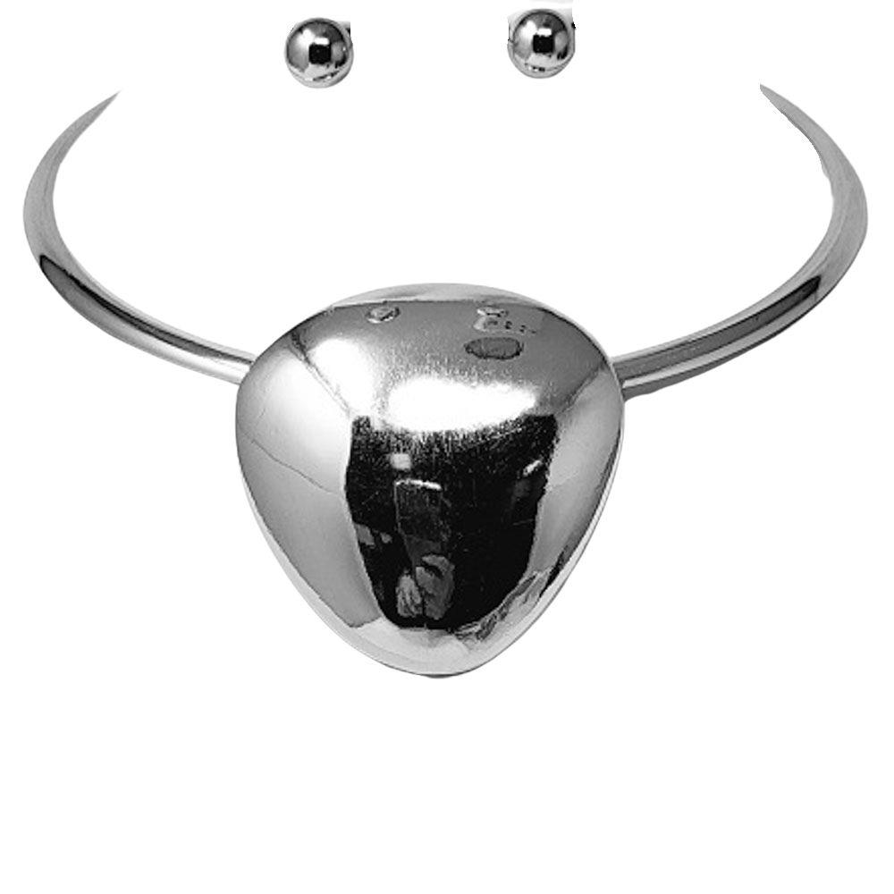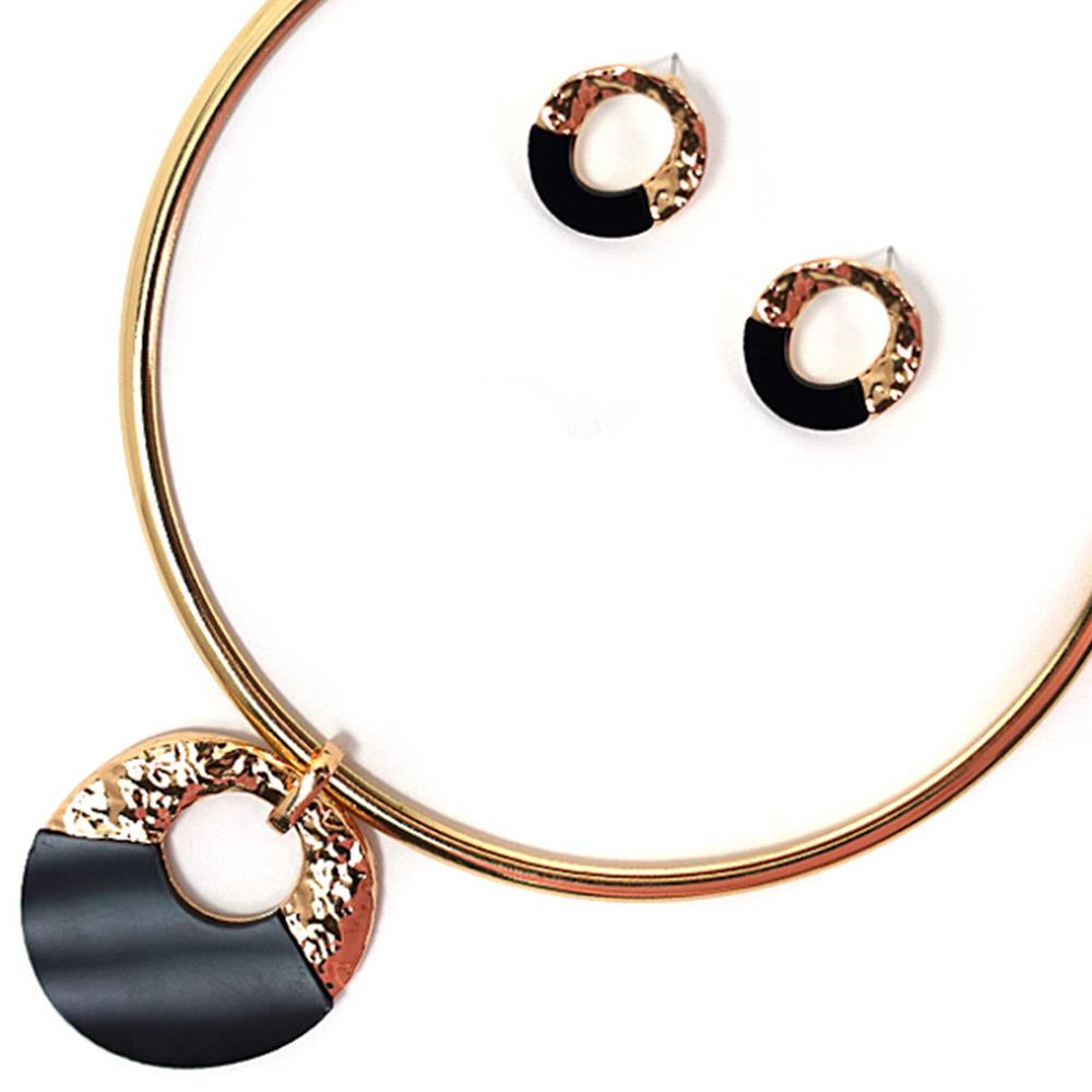 METAL COLLAR OVAL PENDANT CHOKER STATEMENT NECKLACE EARRING SET