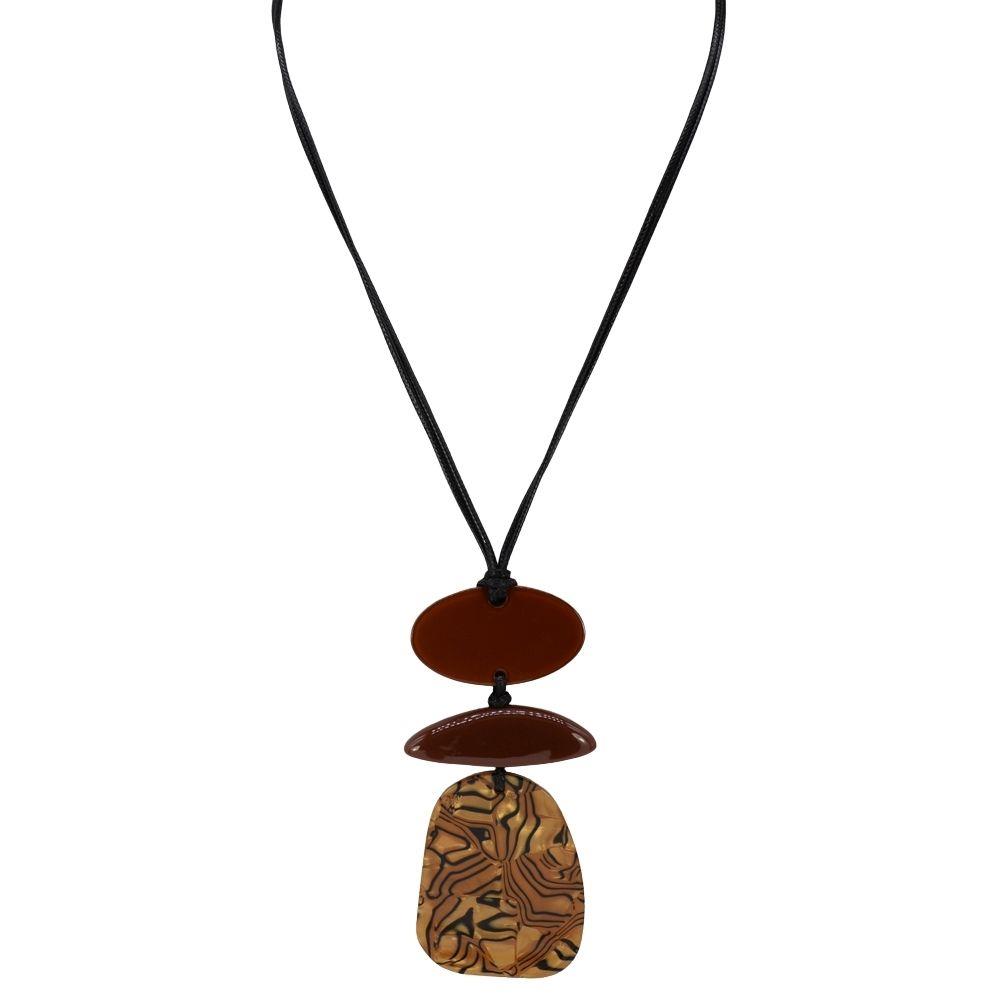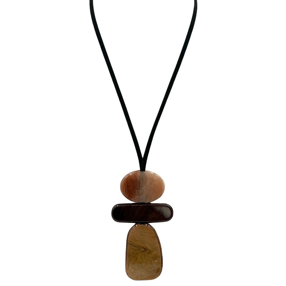 BROWN 3PC RESIN LONG CORD NECKLACE