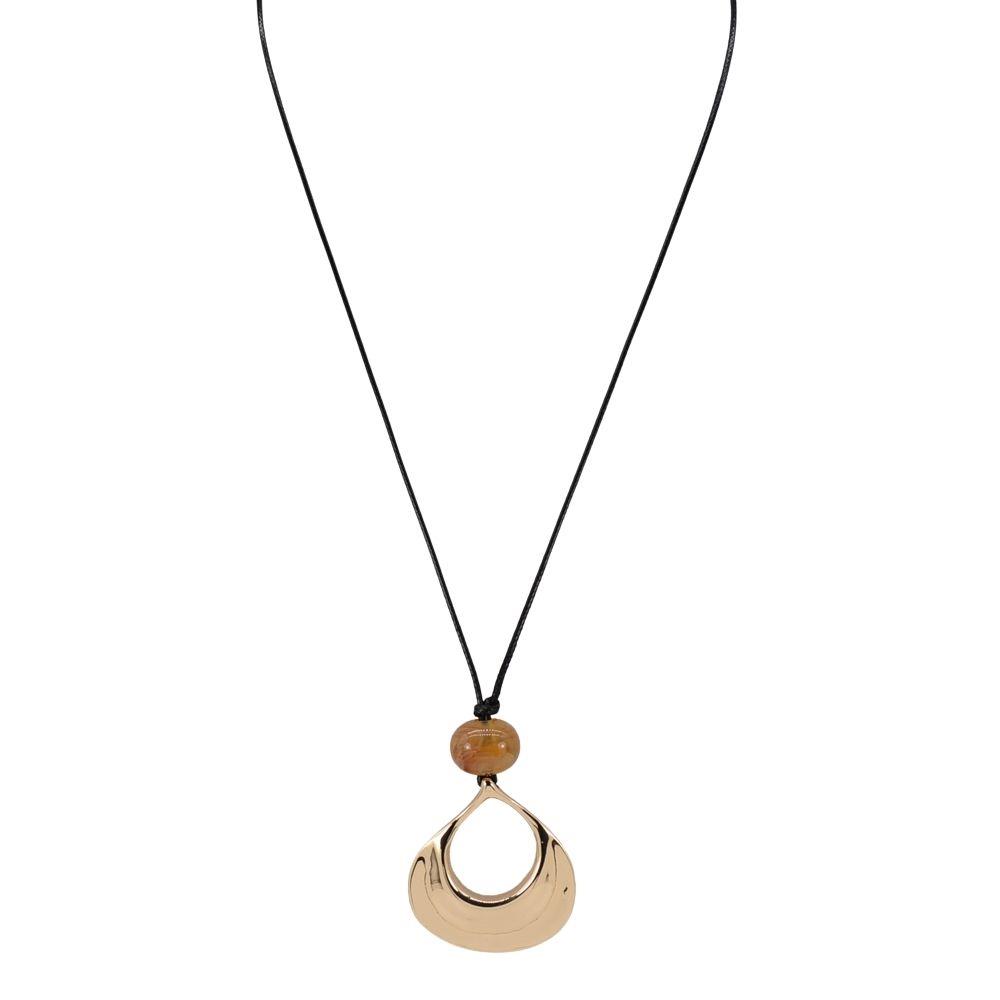 BLACK CORD RESIN PENDANT LONG NECKLACE