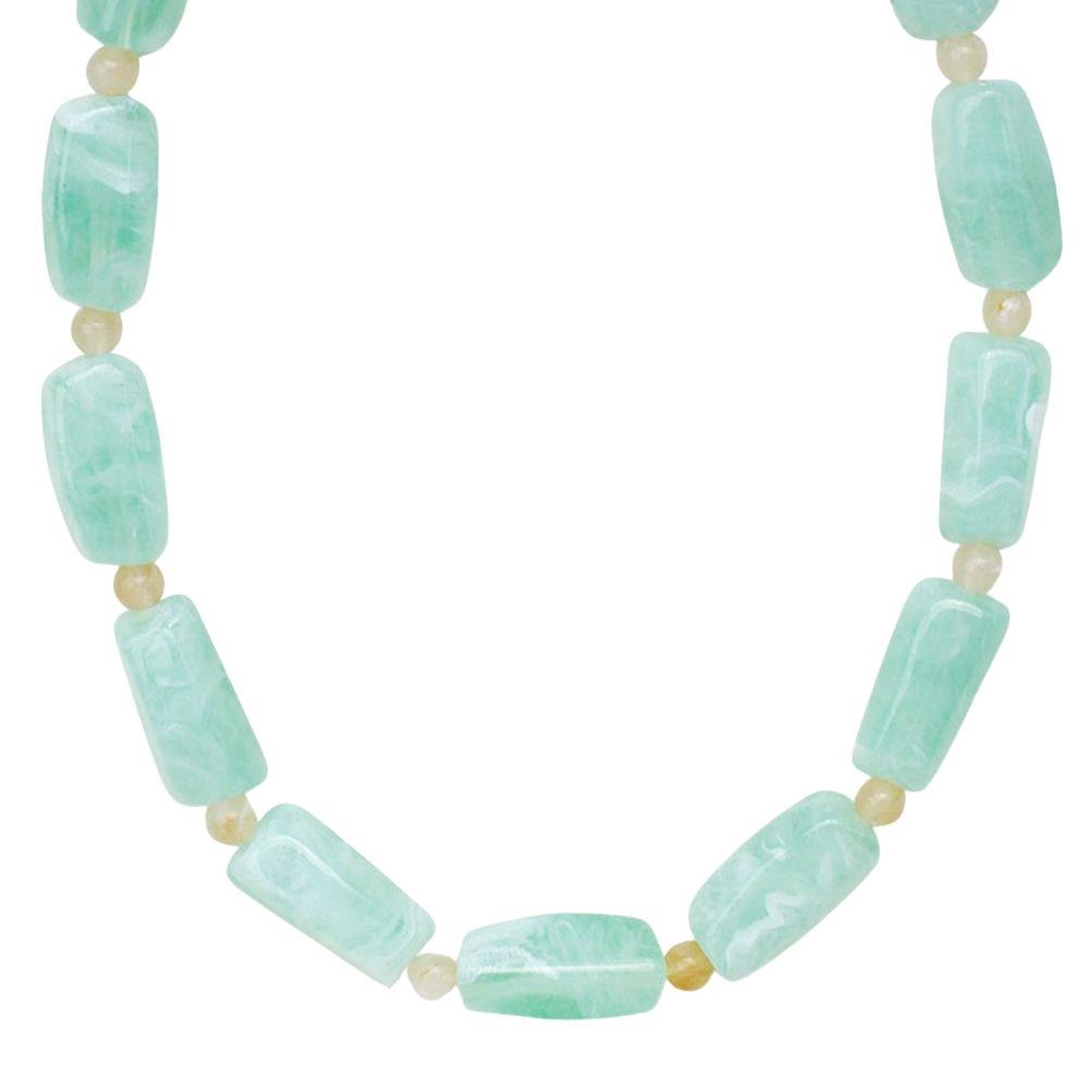 ACETATE OVAL STONE FLAT CHAIN METAL NECKLACE