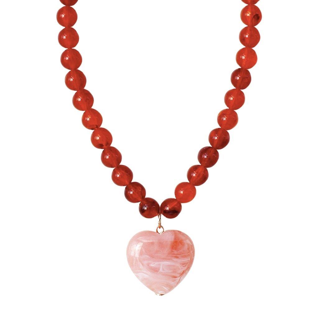 MOTHER OF PEARL HEART PENDANT WATER RESISTANT NECKLACE
