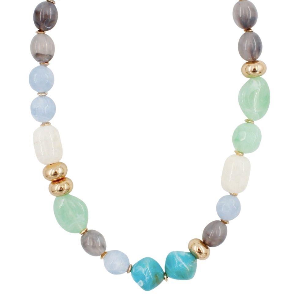 TEXTURED OVAL & ROUND ACCENT BEADED WATER RESISTANT NECKLACE