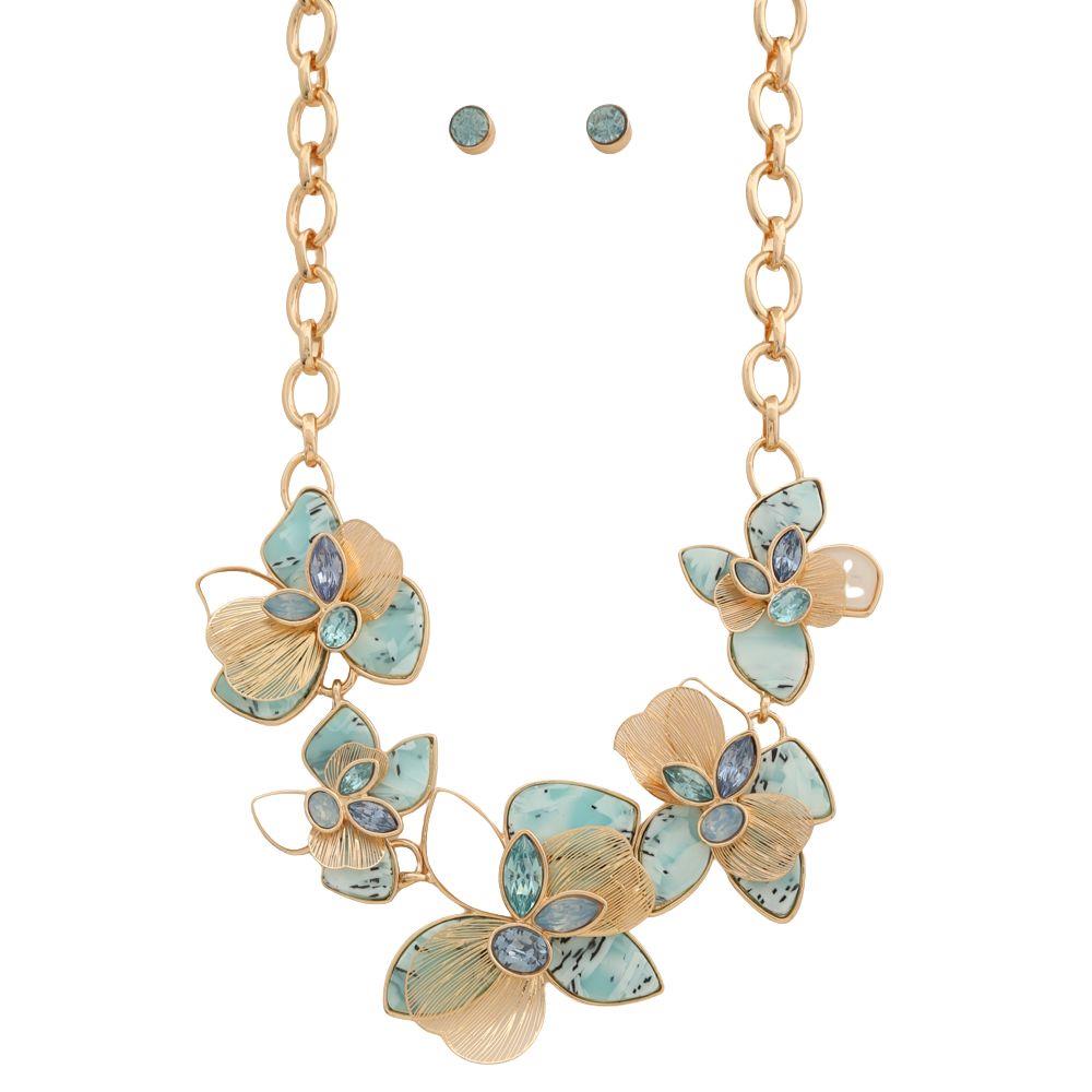FLORAL CLUSTER STATEMENT NECKLACE EARRING SET