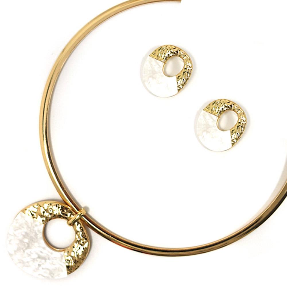 METAL PEARL SHELL STATEMENT NECKLACE EARRING SET