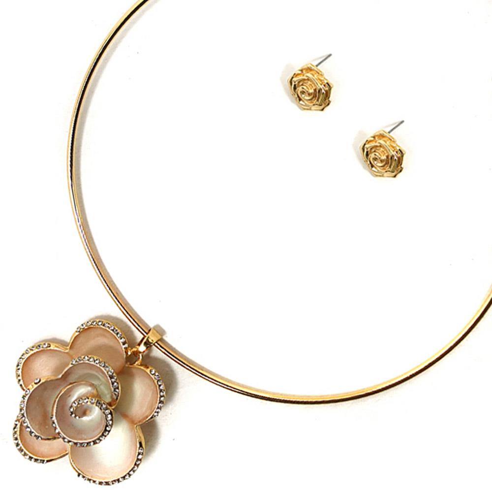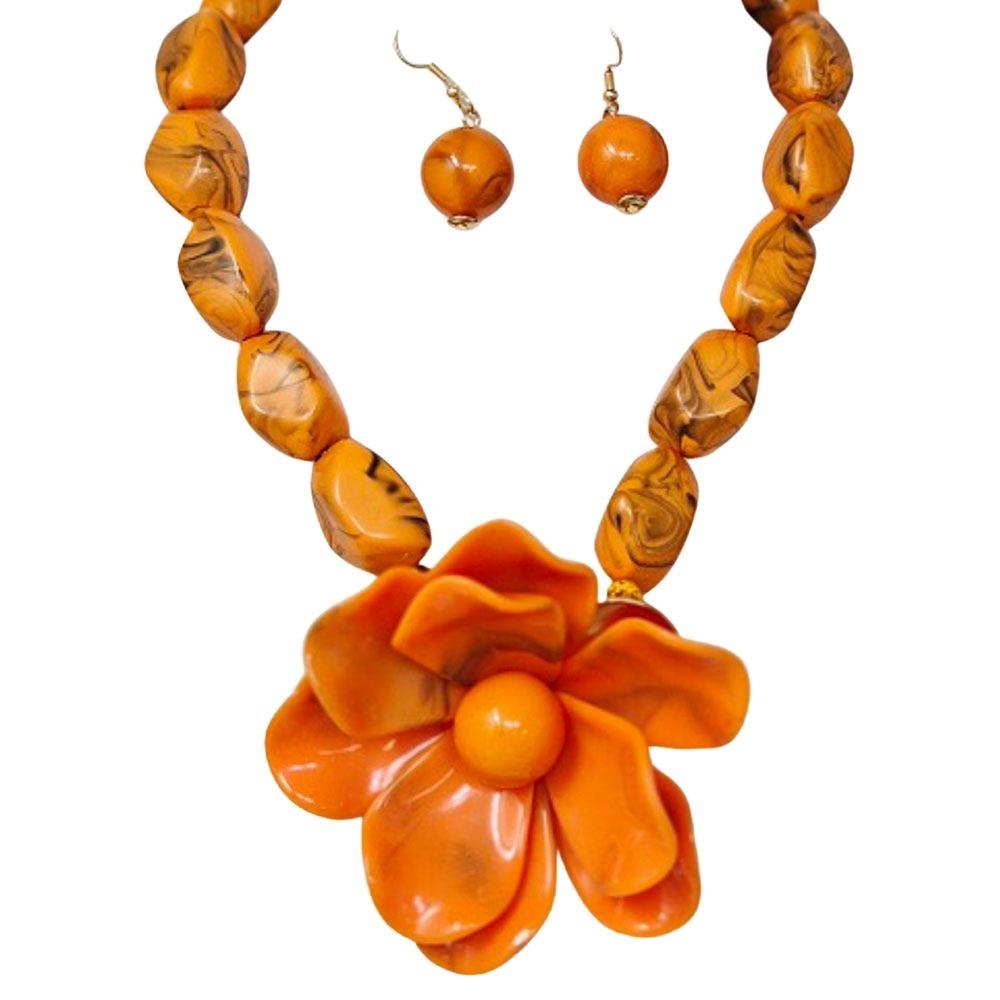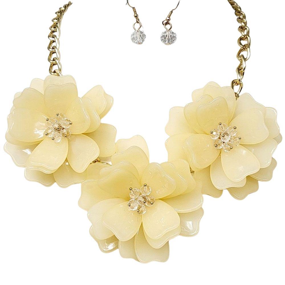FLOWER W EPOXY  NECKLACE EARRING SET
