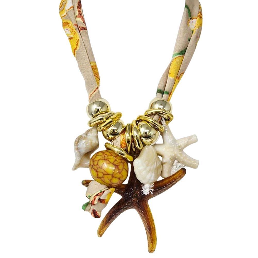 FABRIC WRAPPED SHELL STARFISH MULTI CHARM NECKLACE