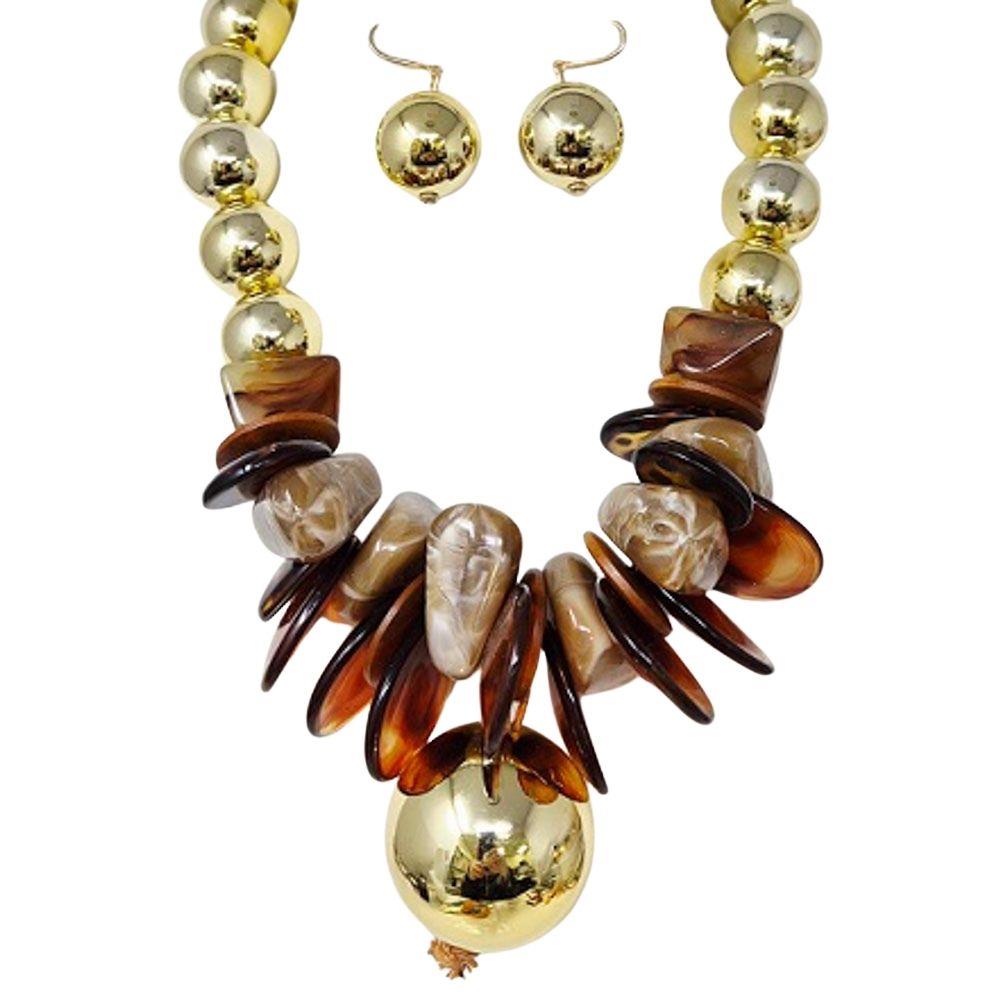METAL W  ACRYLIC NECKLACE EARRING SET