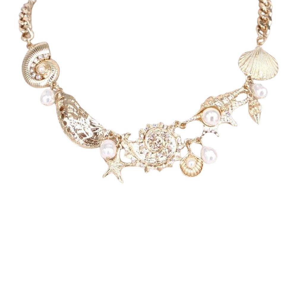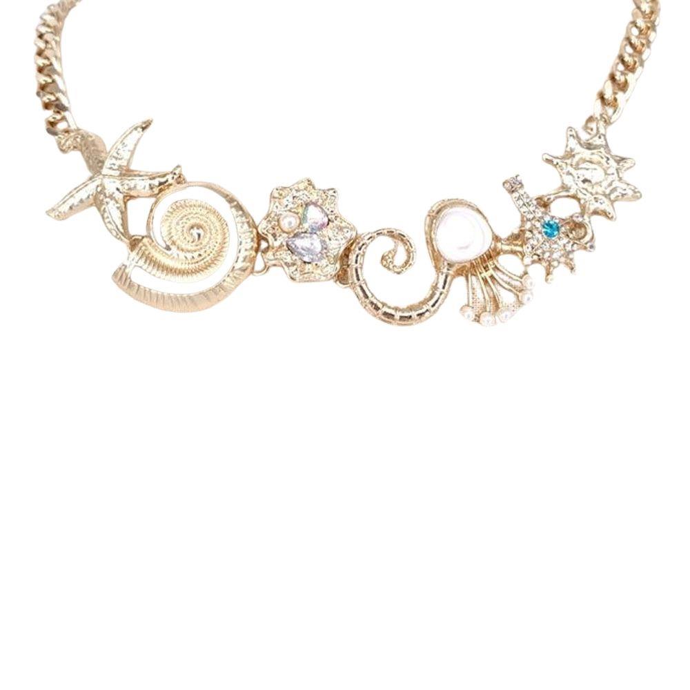 METAL CHAIN SEALIFE STARFISH SWIRL SHELL RHINESTONE NECKLACE