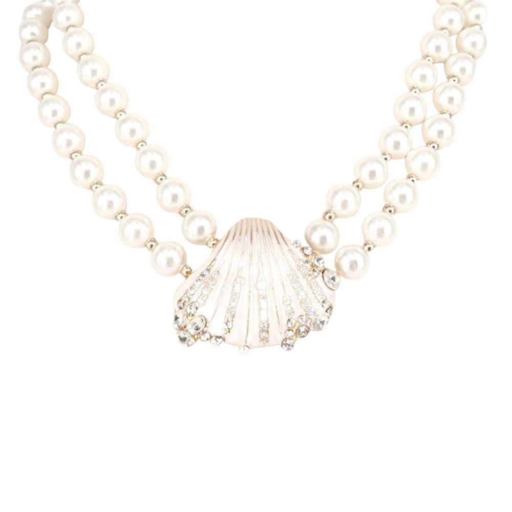 PEARL MULTI STRAND SEALIFE RHINESTONE SHELL PENDANT NECKLACE