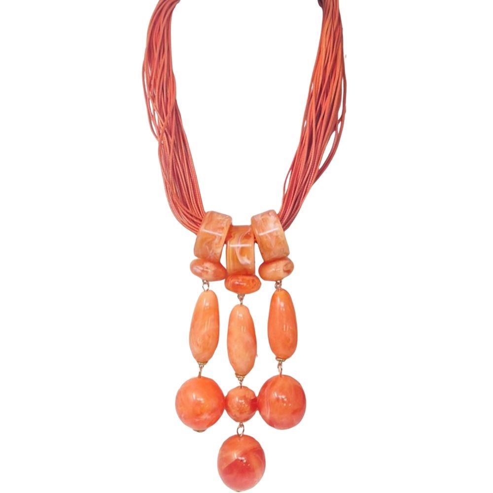 ACRYLIC FLOWER PENDANT BEADED NECKLACE