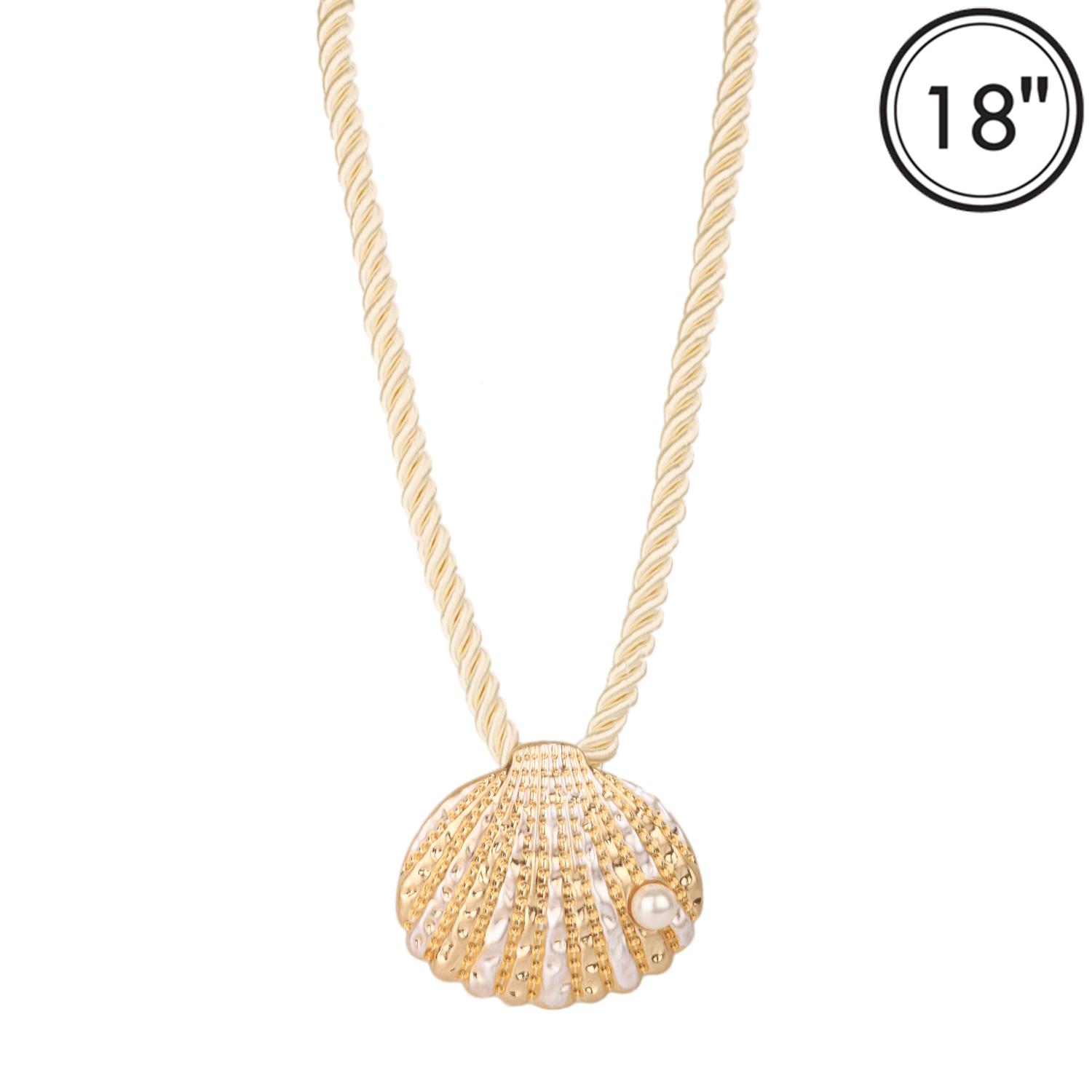 SHELL SHAPED CERAMICS CHARM W/ PEARL BEADED  SHORT NECKLACE