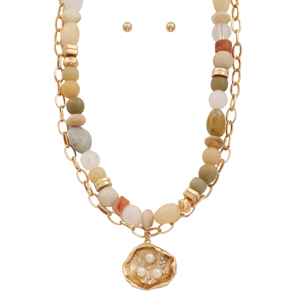 MULTI LAYER BEAD METAL SHAPE DESIGN NECKLACE