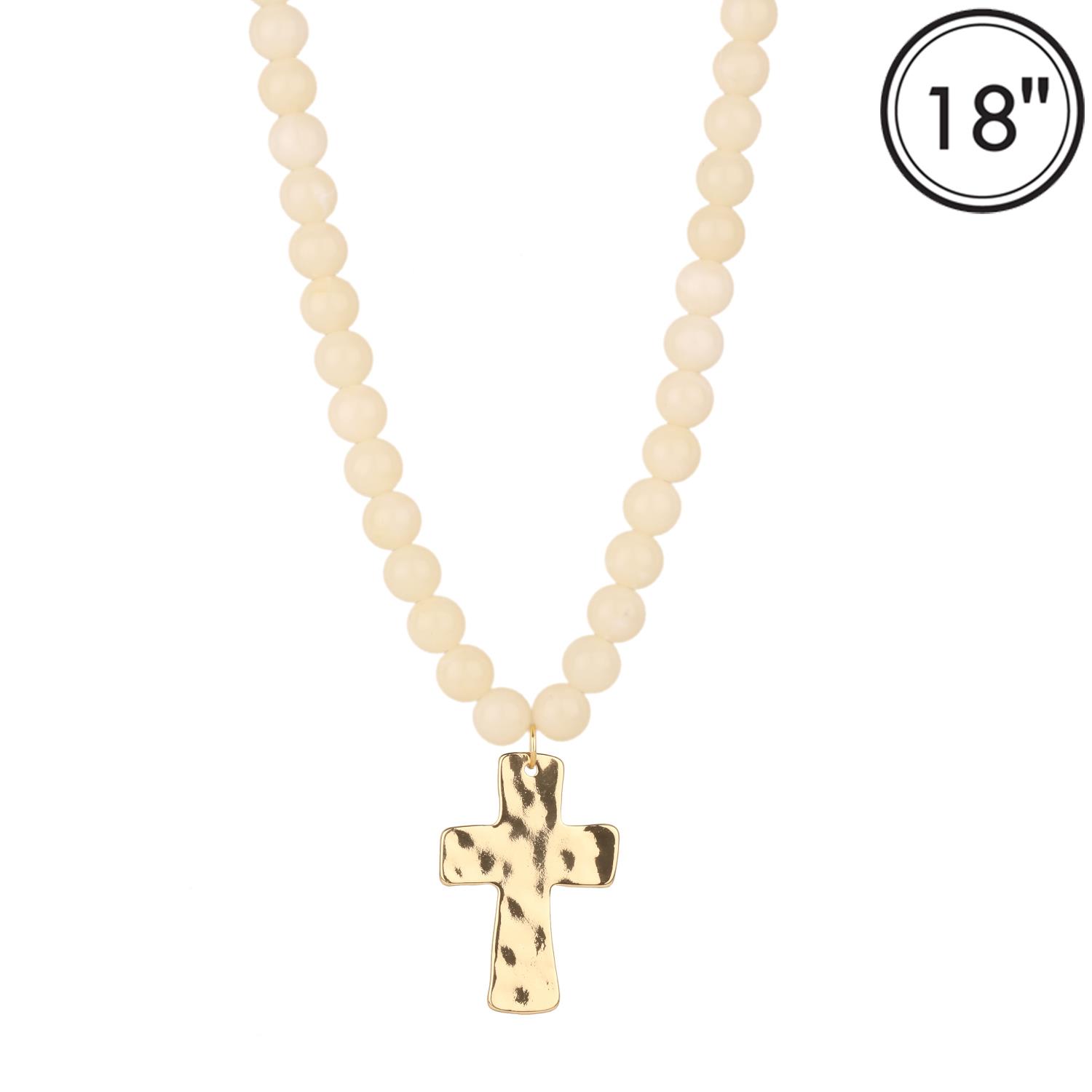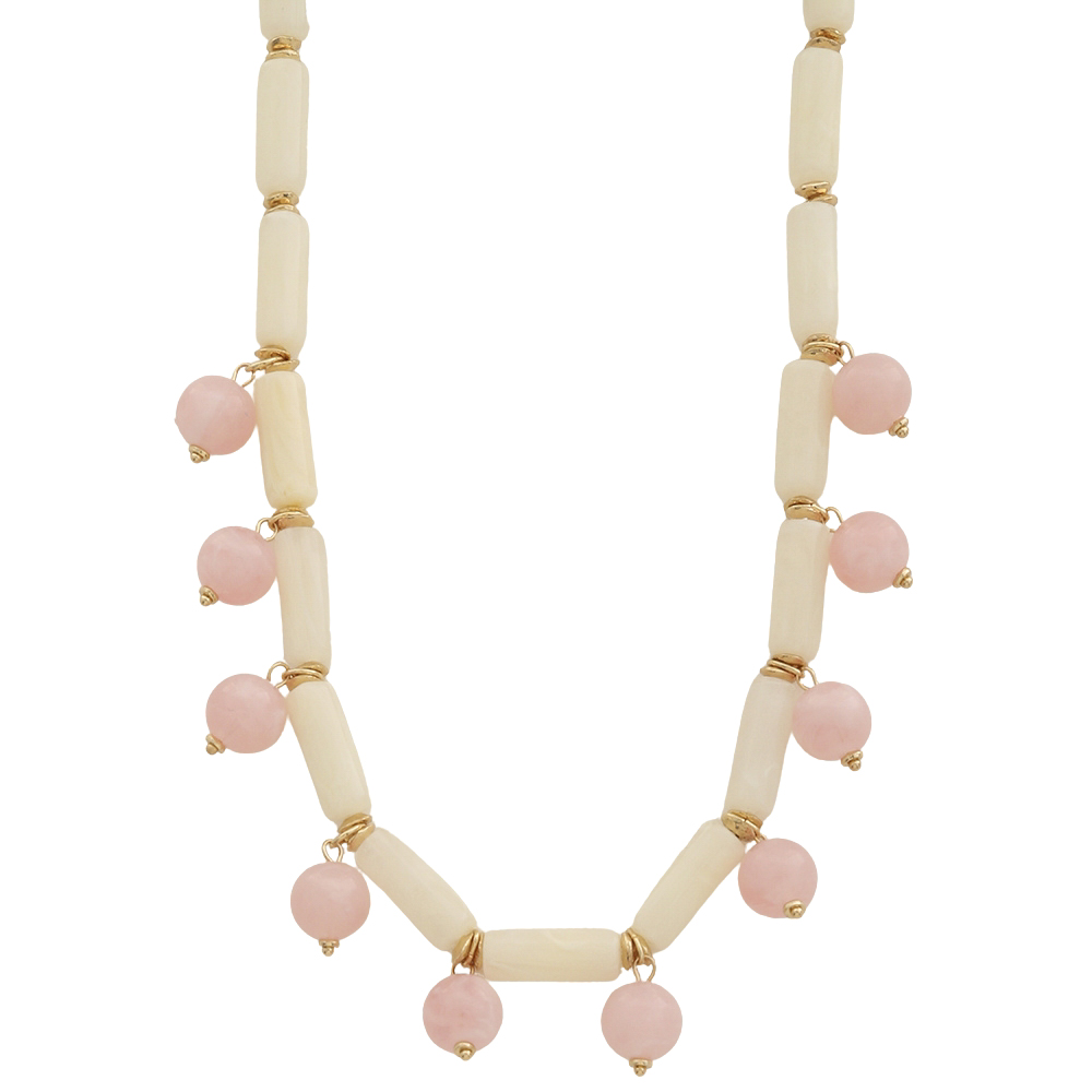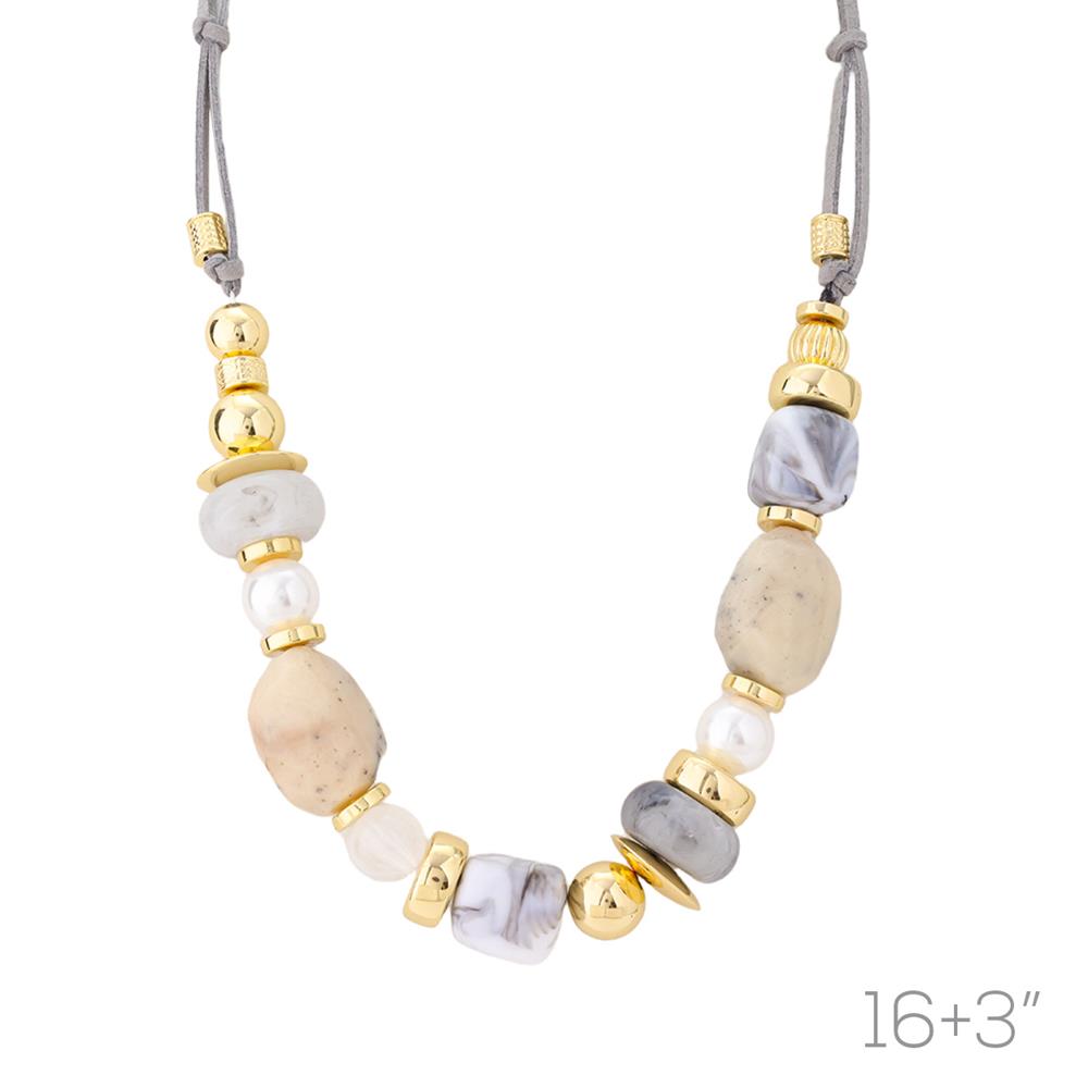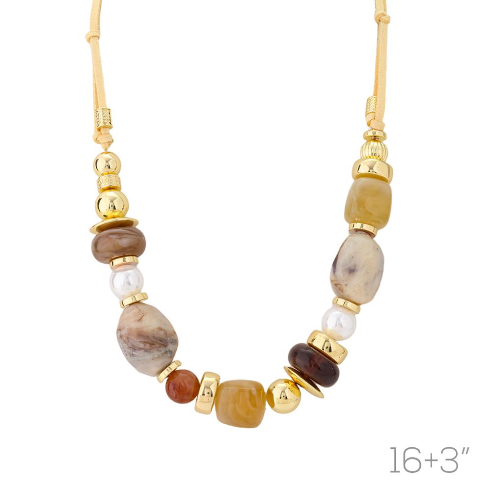 WOOD BEAD STONE MIXED SHAPE NECKLACE