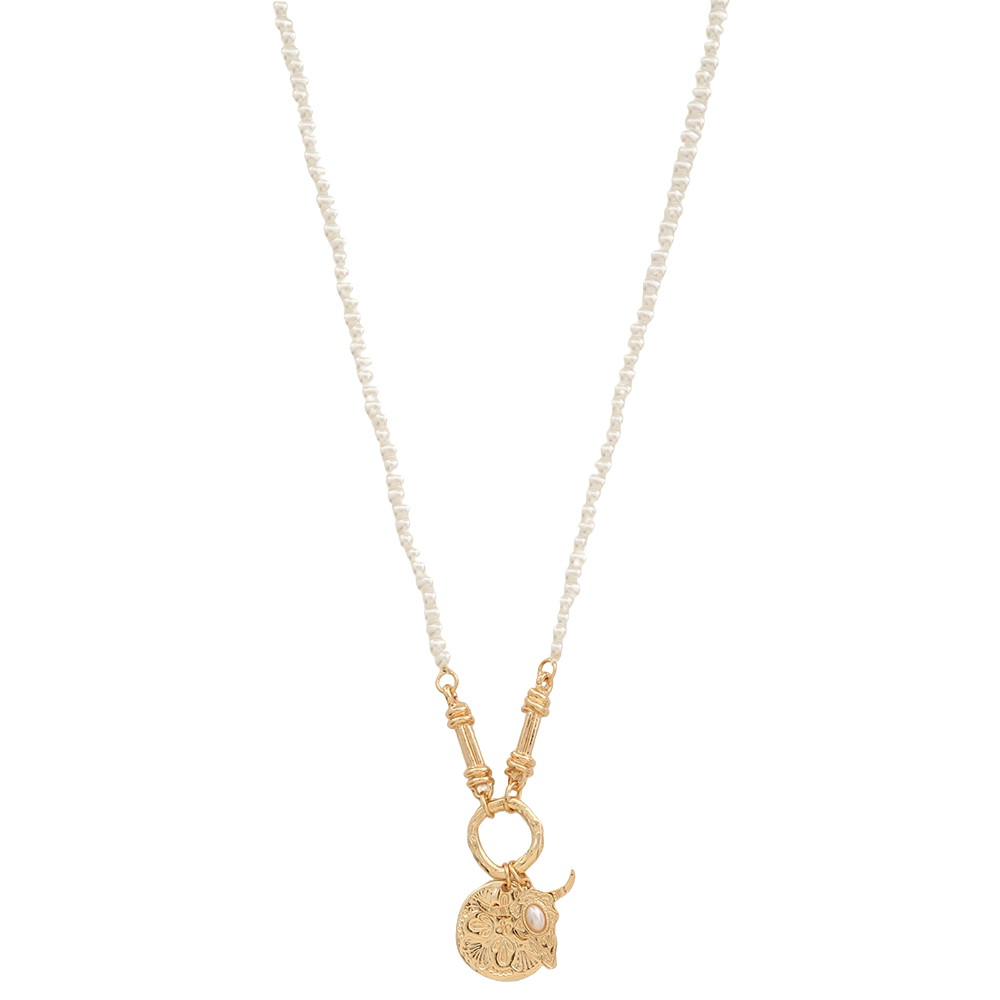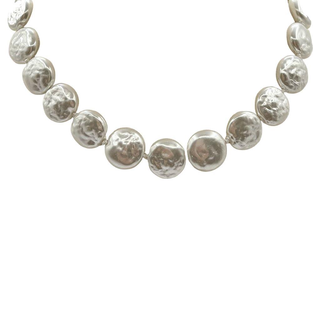 PEARL LINE METAL COIN PENDANT NECKLACE