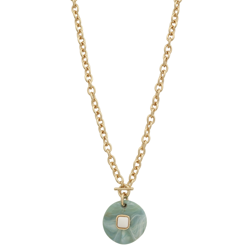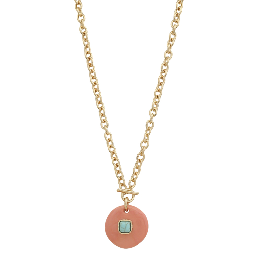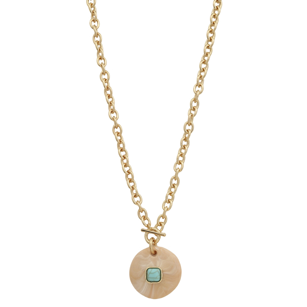 RESIN STONE DISC PENDANT STATEMENT NECKLACE