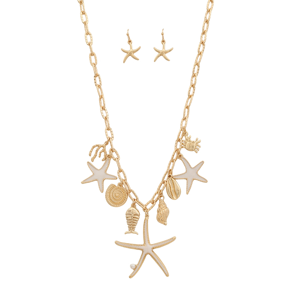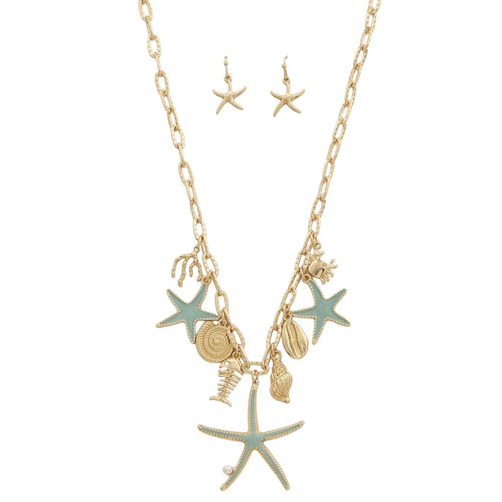 SEA LIFE CHARM PENDANT CHAIN LINK NECKLACE EARRING SET