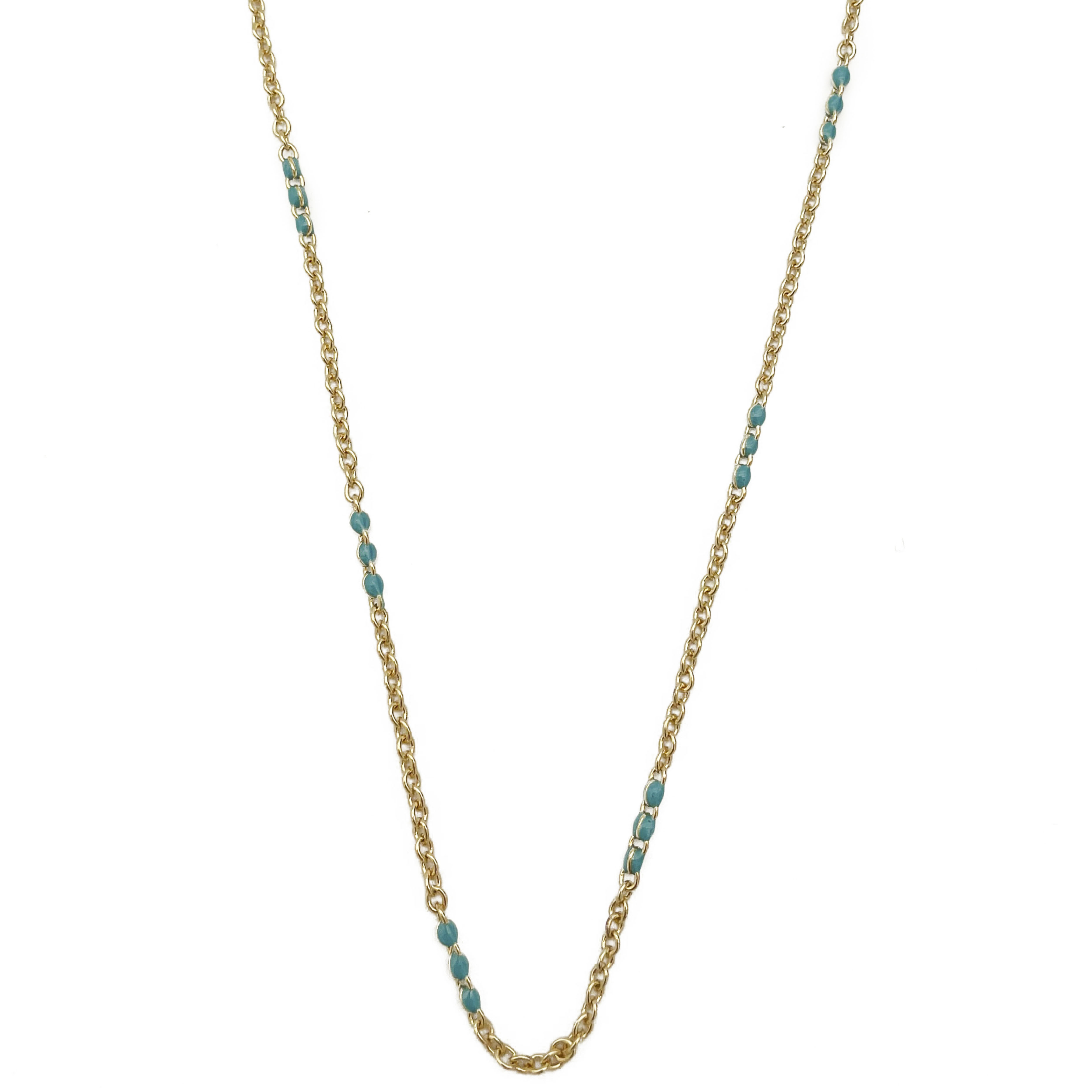 METAL BALL CHAIN STONE STATION NECKLACE
