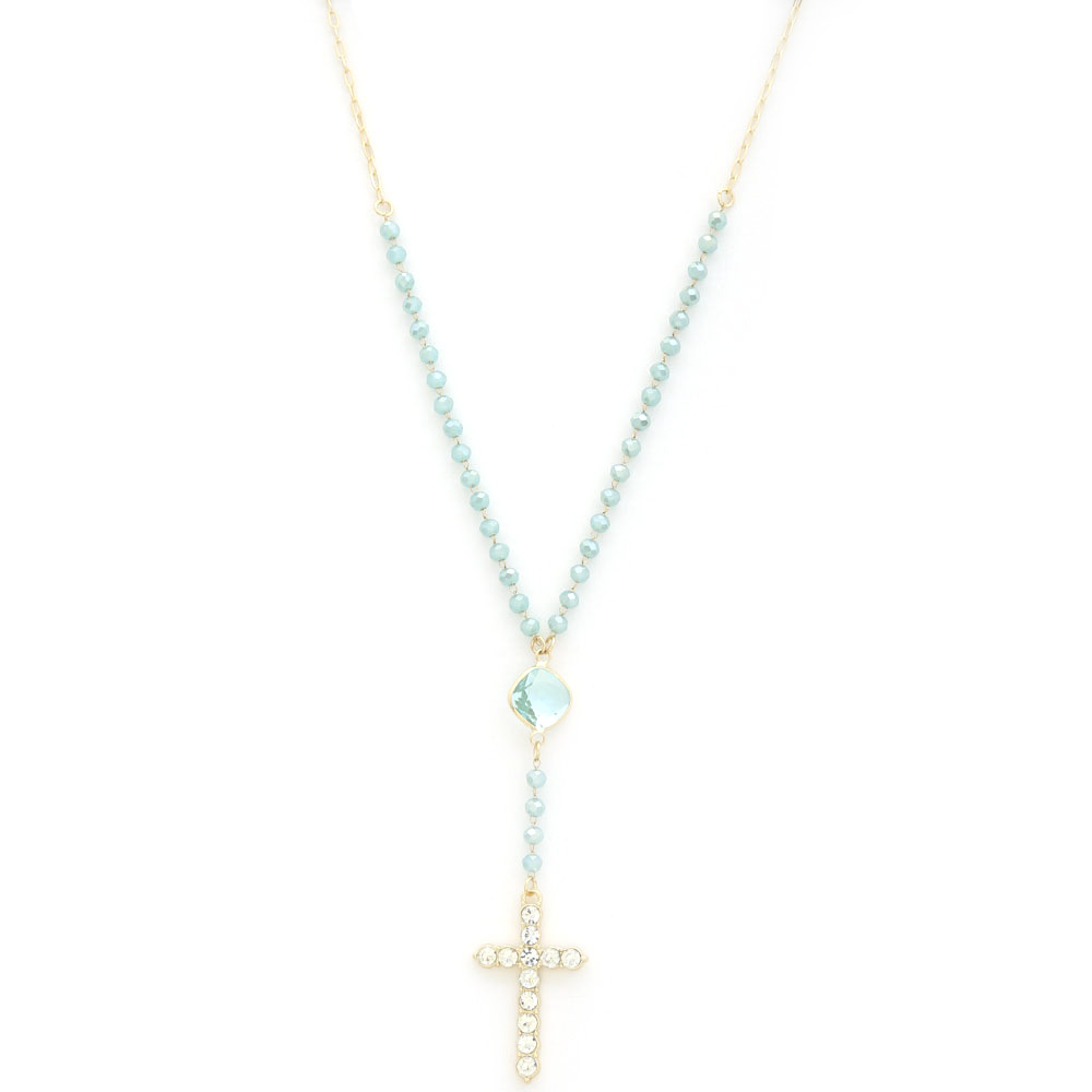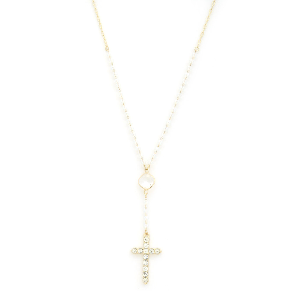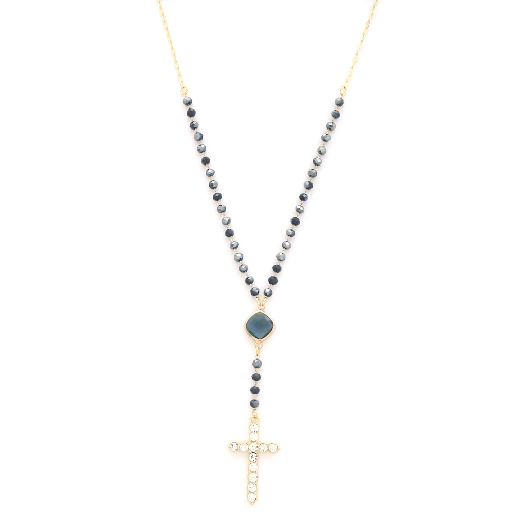 CRYSTAL CROSS PENDANT METAL NECKLACE