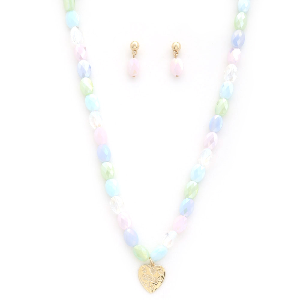 METAL CHAIN W GLASS CHAIN NECKLACE EARRING SET