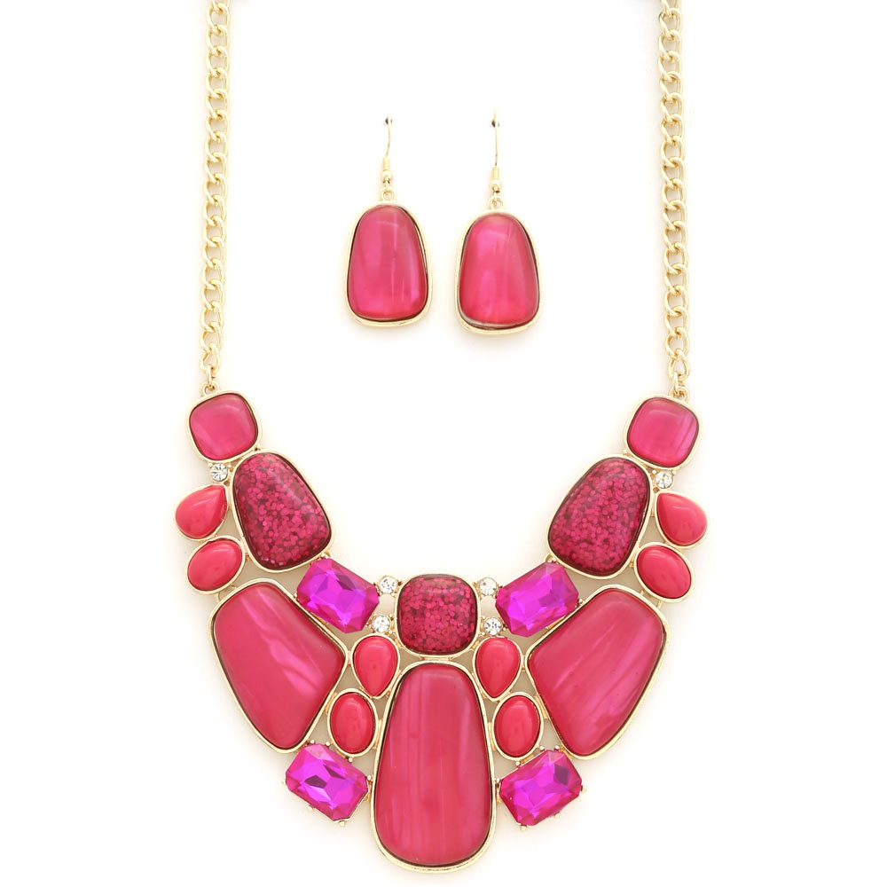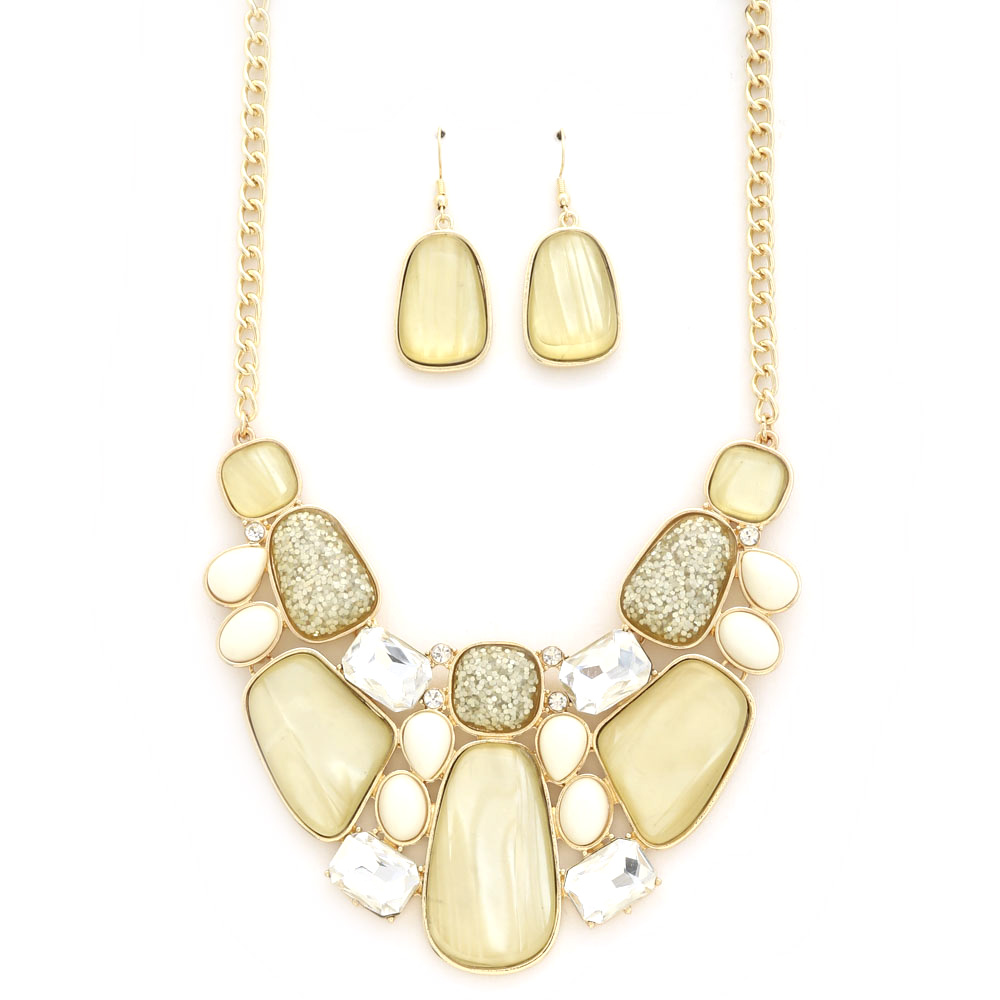 CRYSTAL STONE RHINESTONE NECKLACE EARRING SET