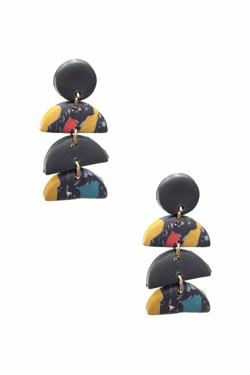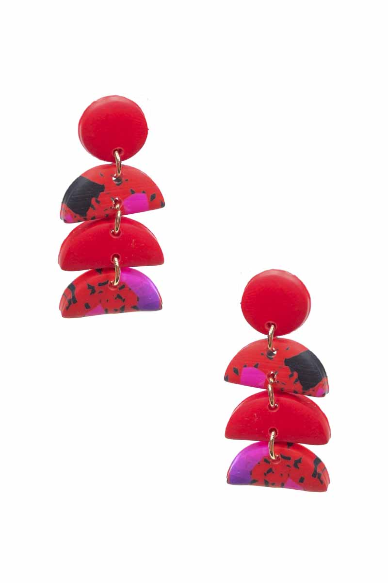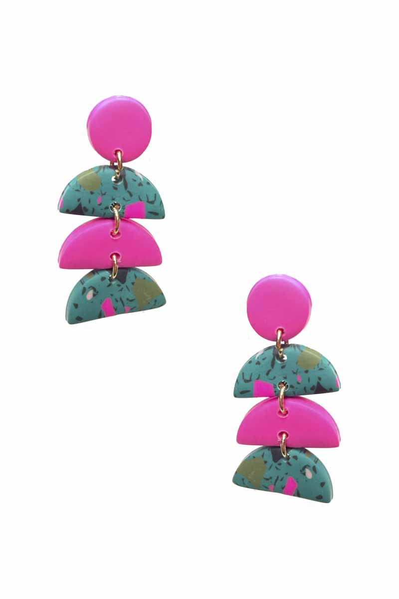 FASHION CLAY ROUND HALF MOON DROP EARRING