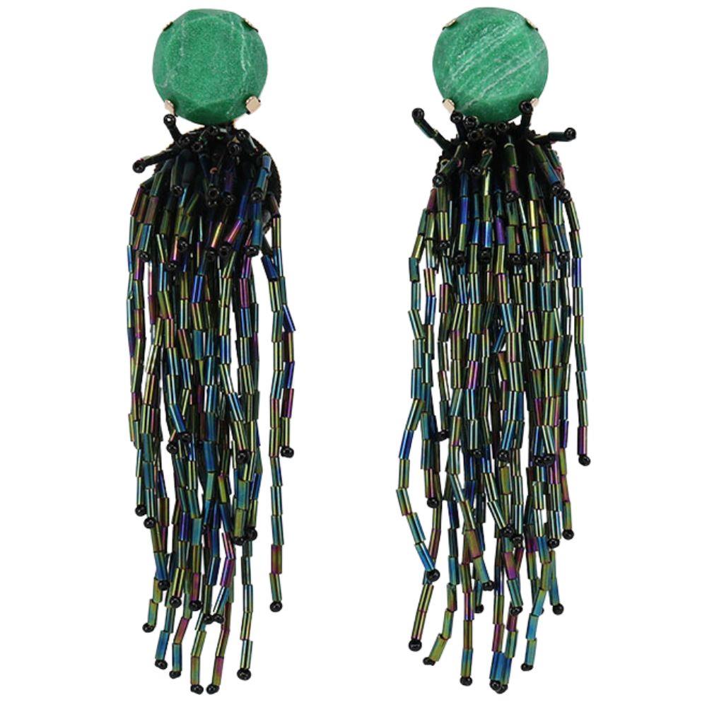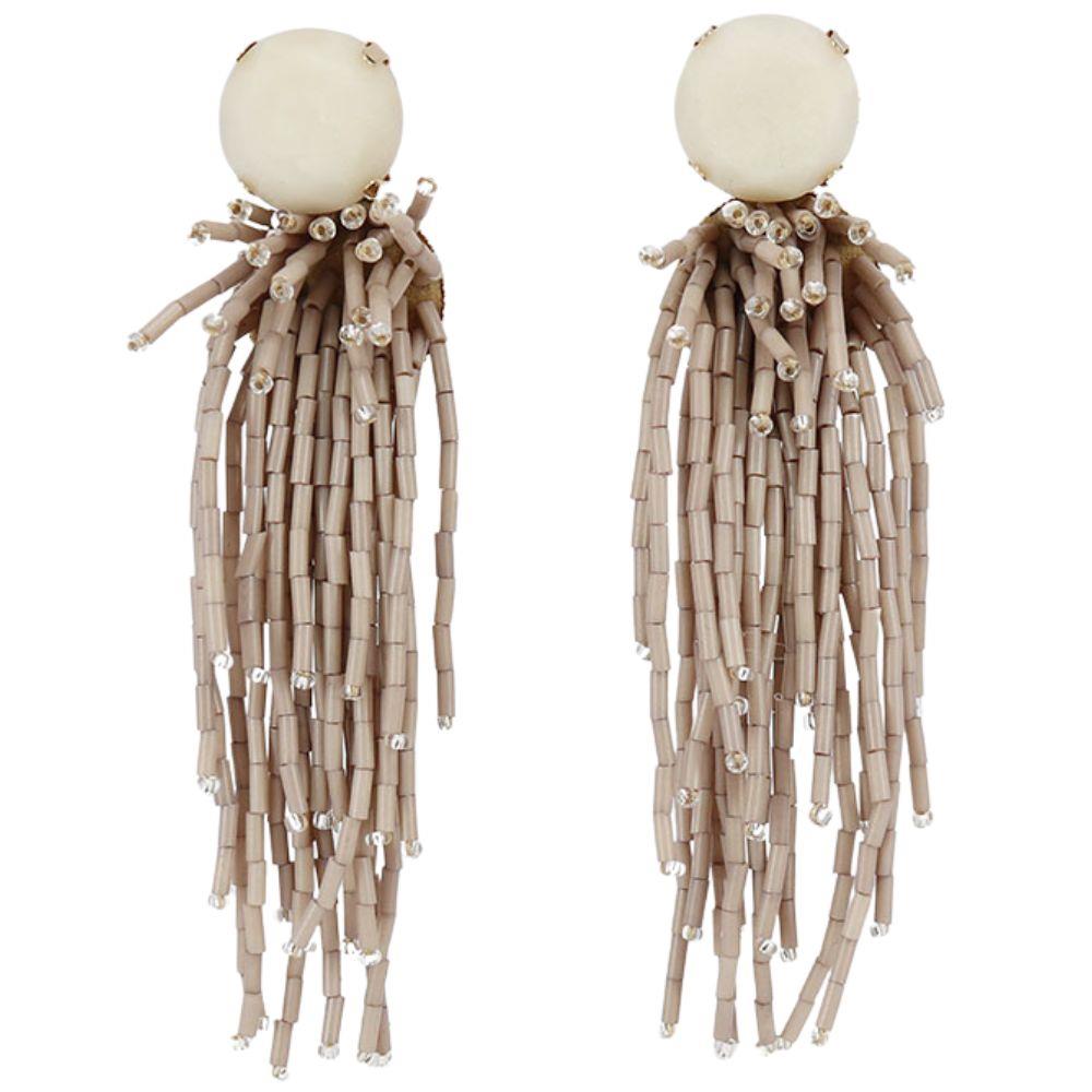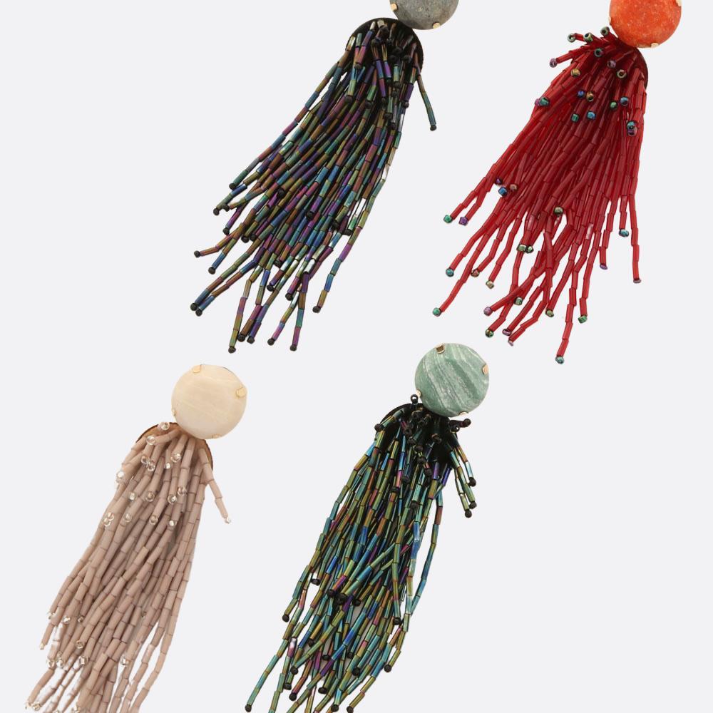 ROUND STONE BEAD TASSEL EARRING