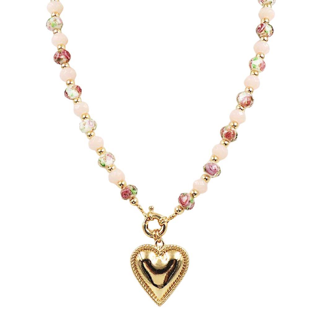HEART CHARM BEADED NECKLACE