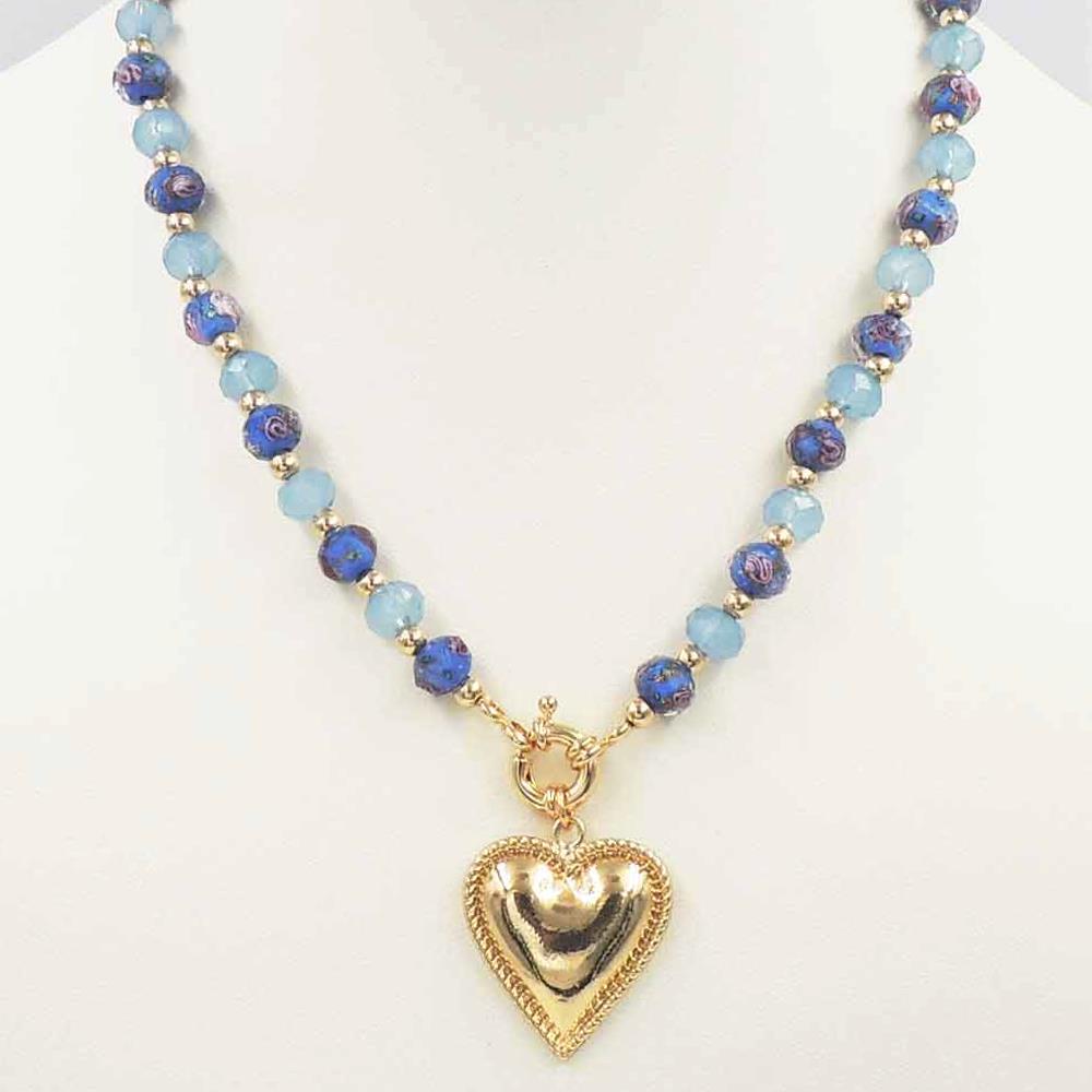 GLASS BEAD HEART PENDANT NECKLACE