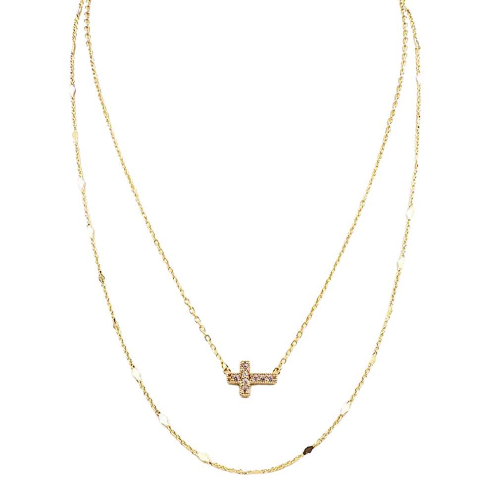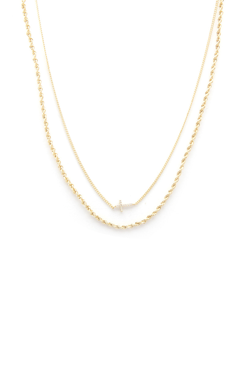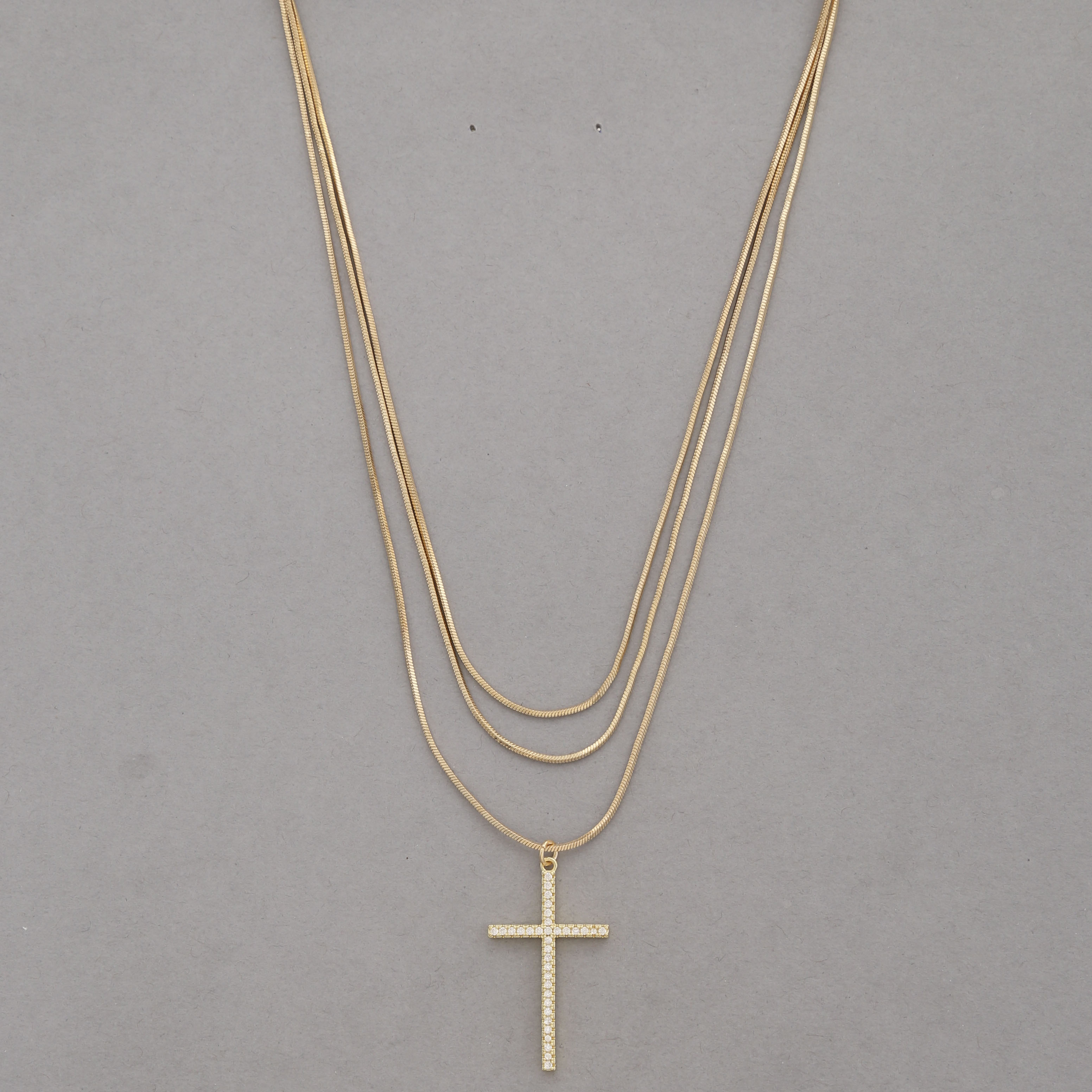 SDJ CROSS PENDANT LAYERED NECKLACE
