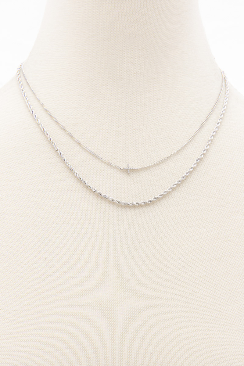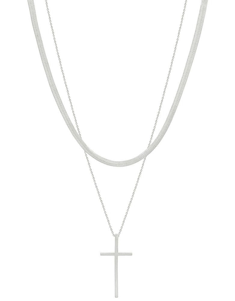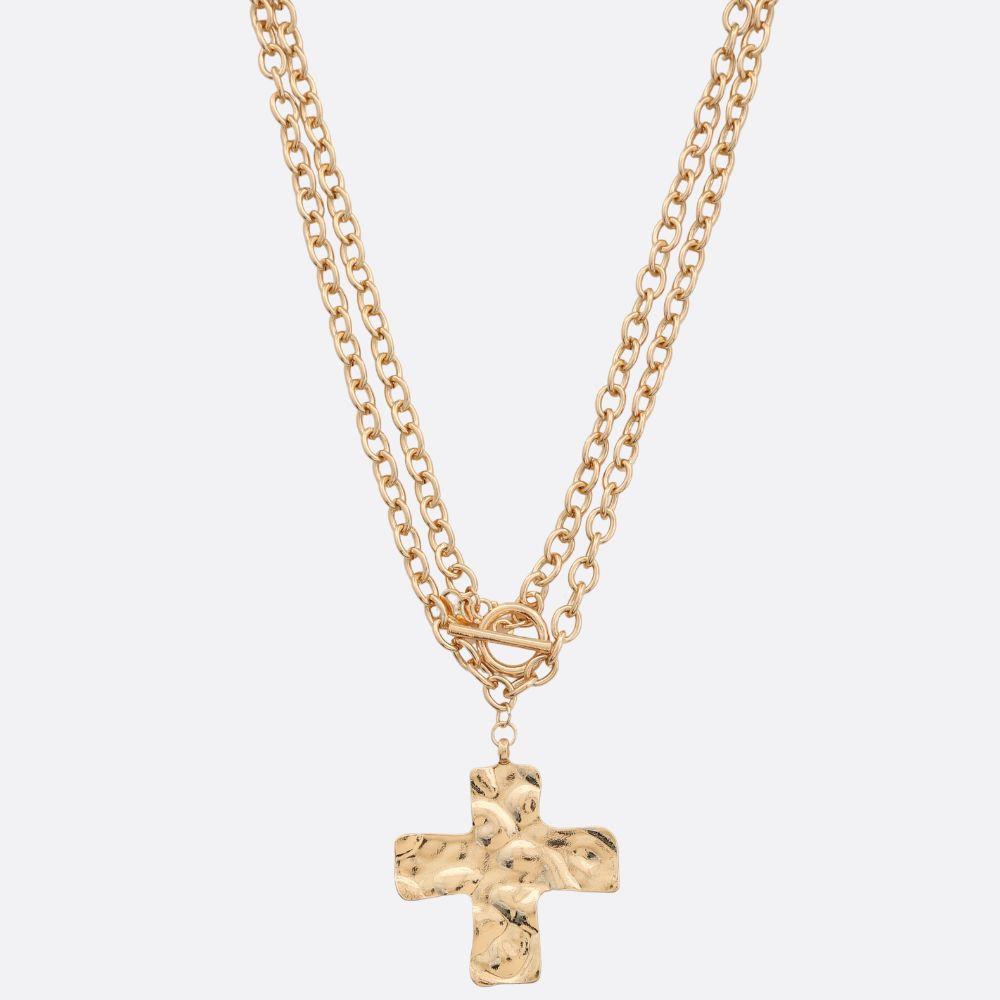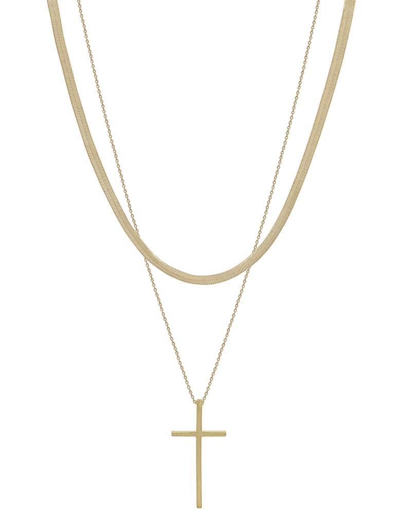 SDJ CROSS PENDANT LAYERED NECKLACE