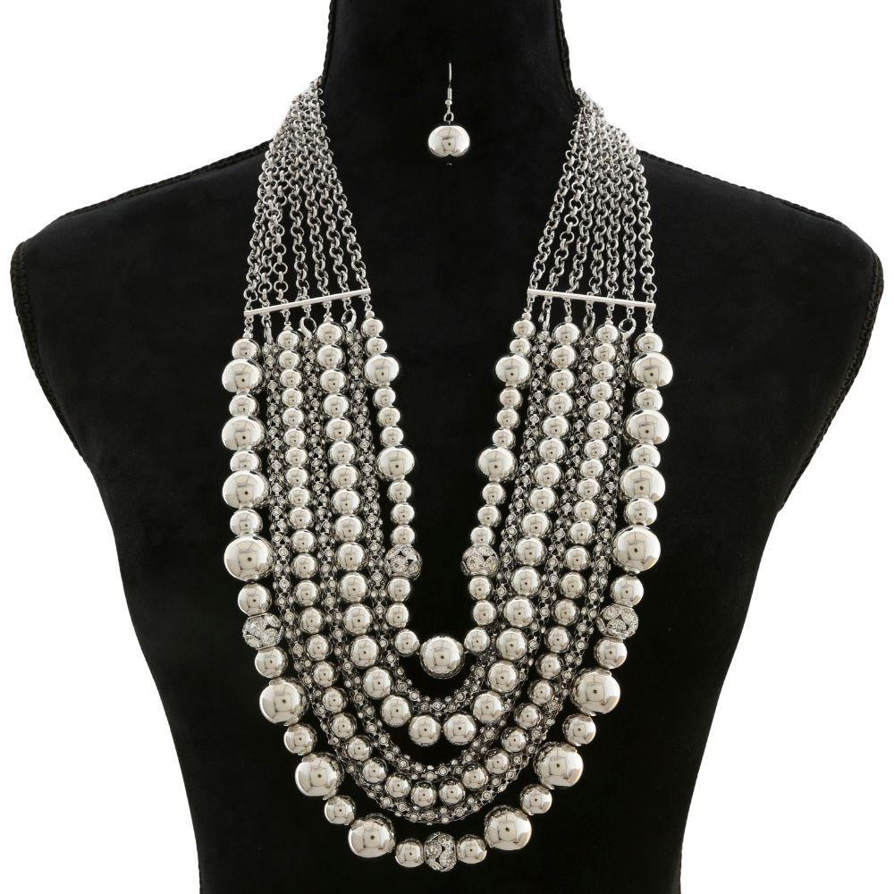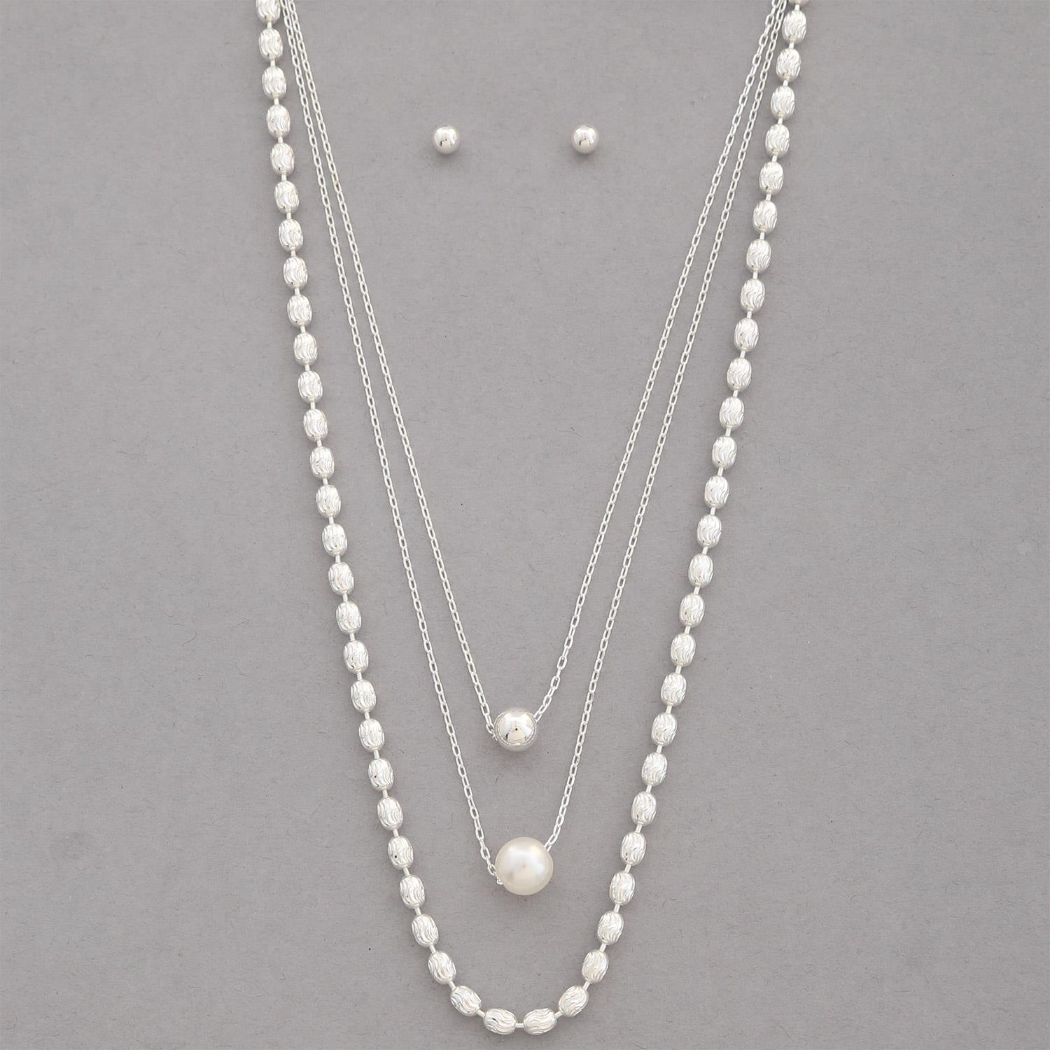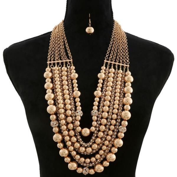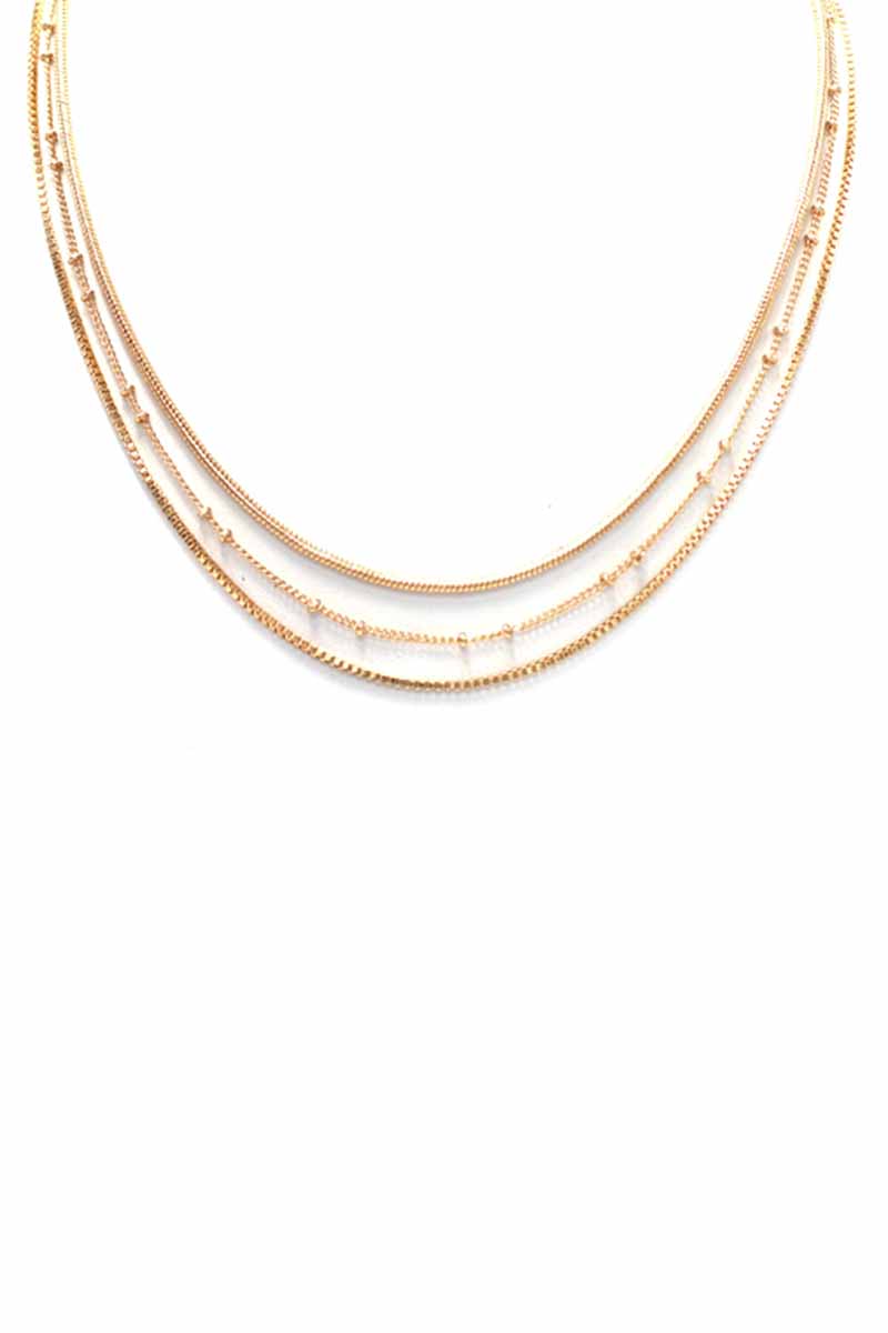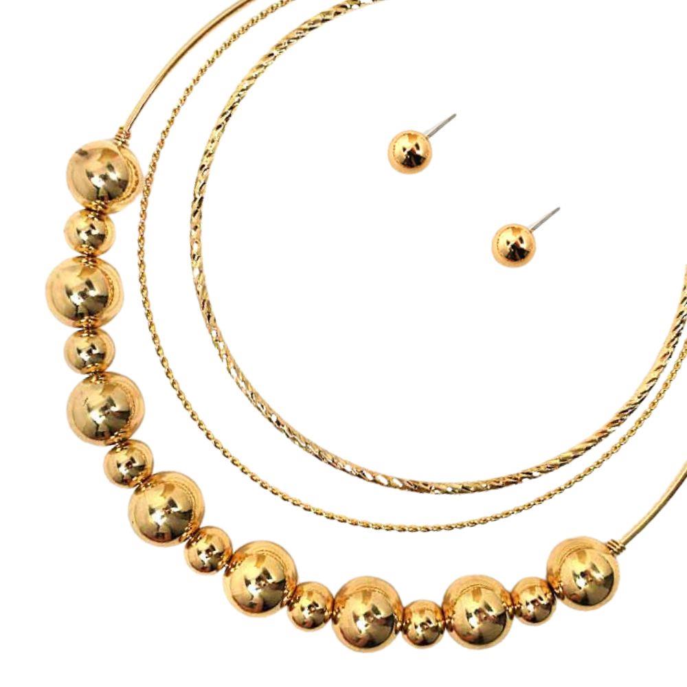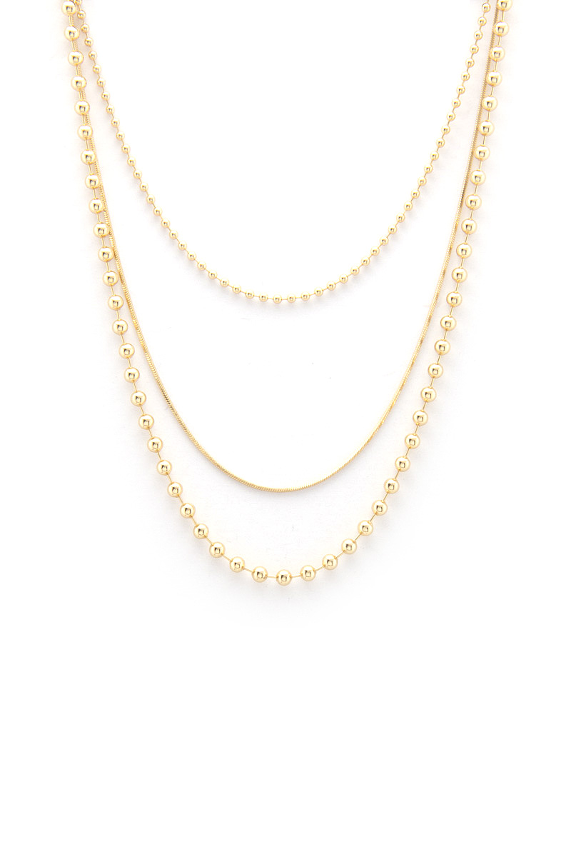 BALL BEAD CHAIN LAYERED METAL NECKLACE
