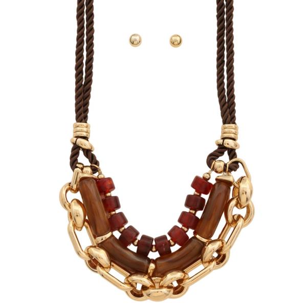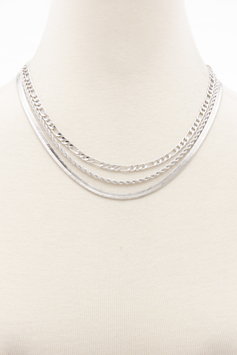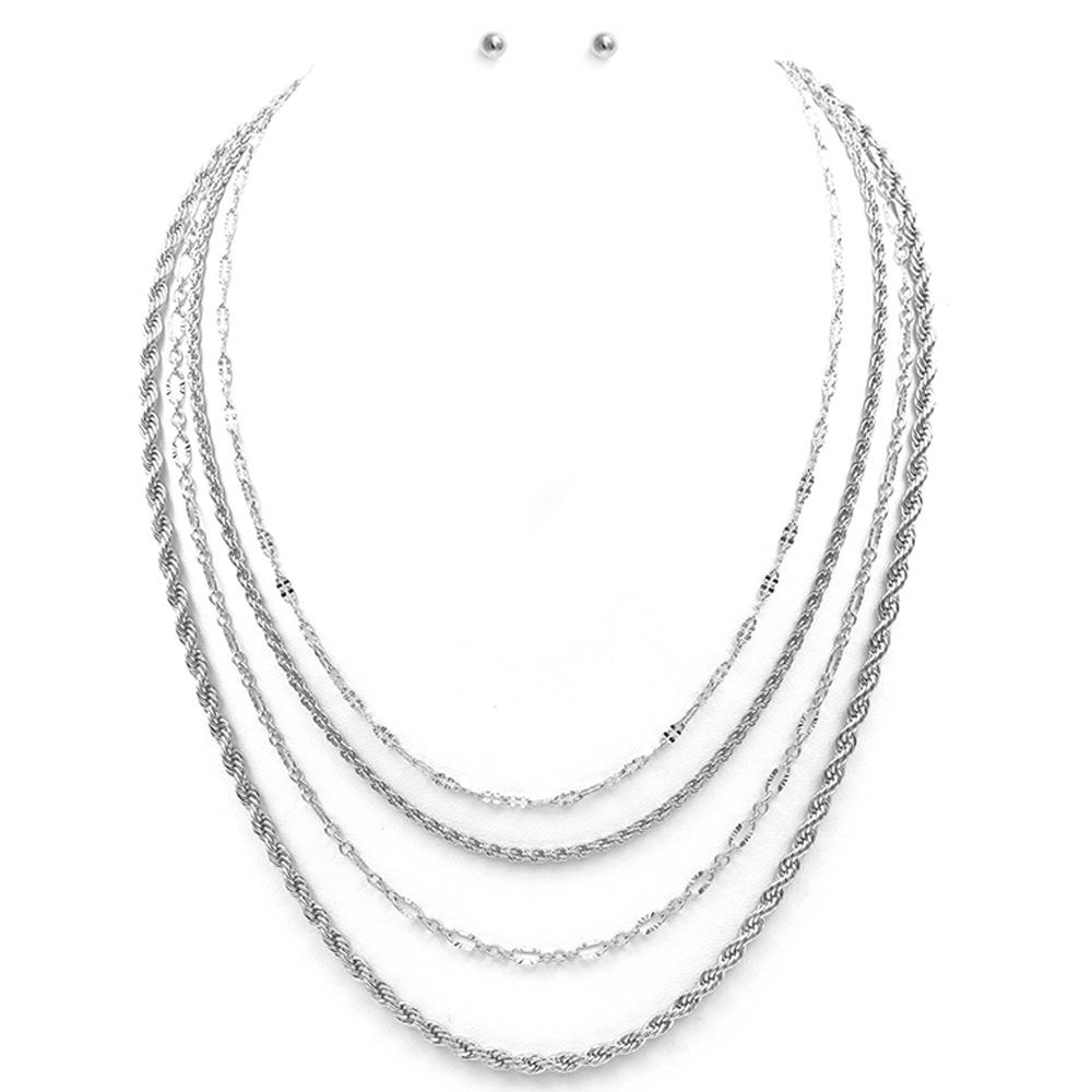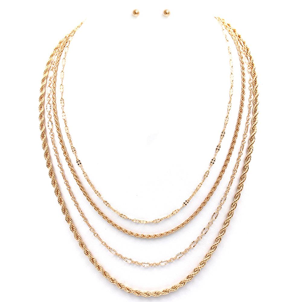 TWO TONE METAL LAYERED ROPE CHAIN NECKLACE