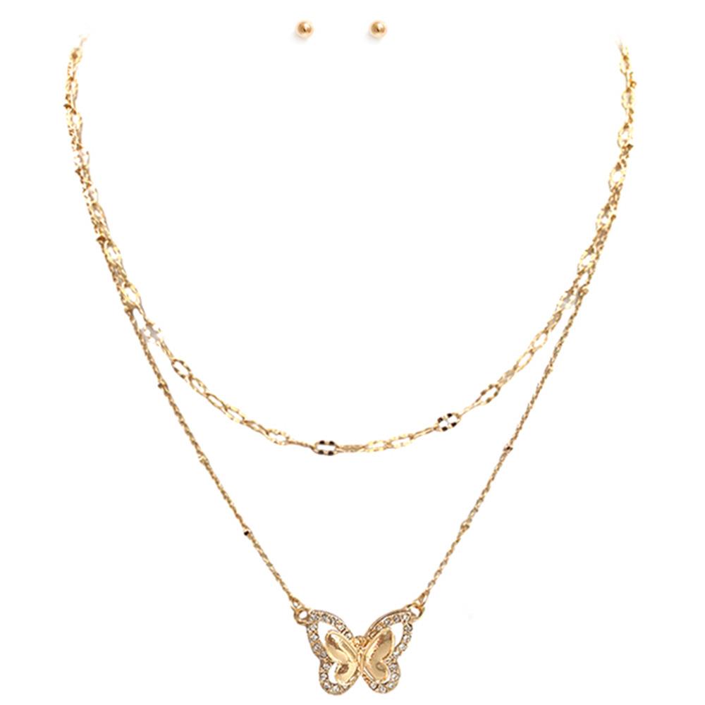 CATTLE HEAD OVAL CRYSTAL LAYERED NECKLACE