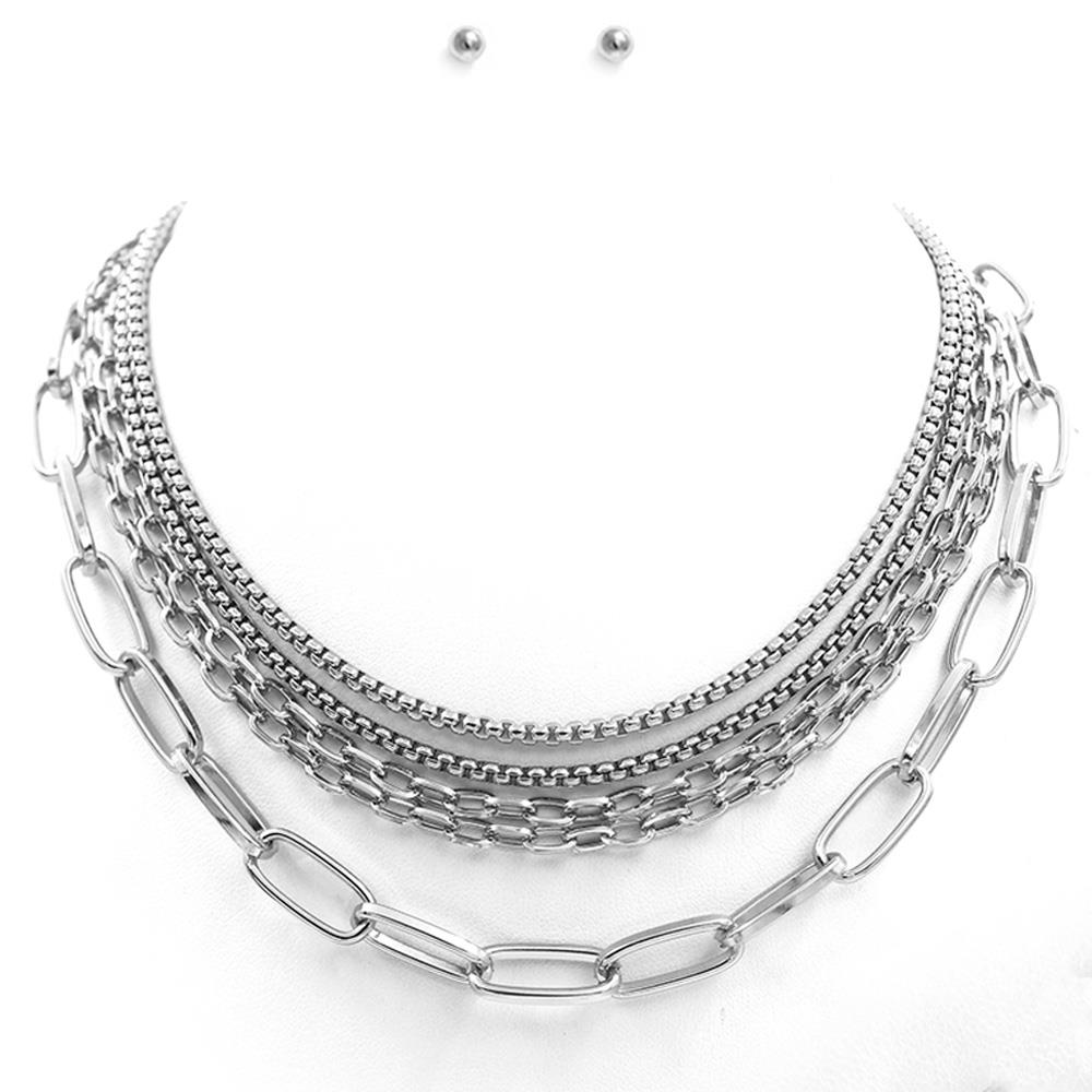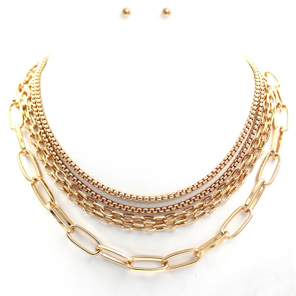 TWO TONE CHAIN LAYERED METAL NECKLACE