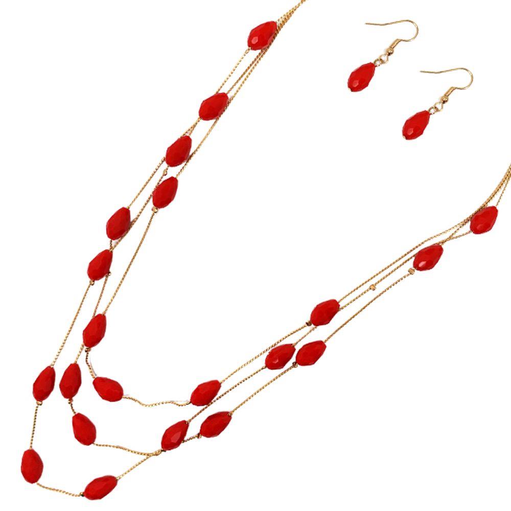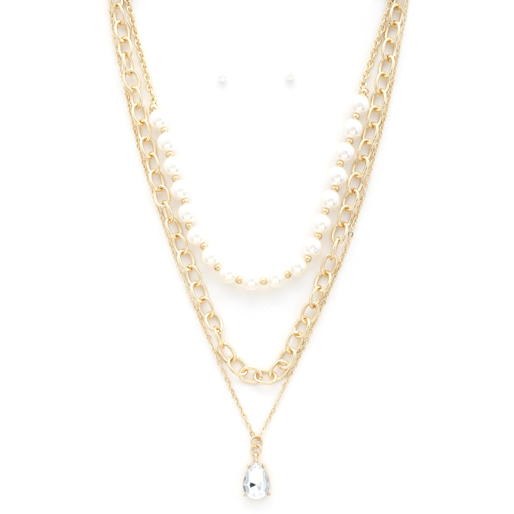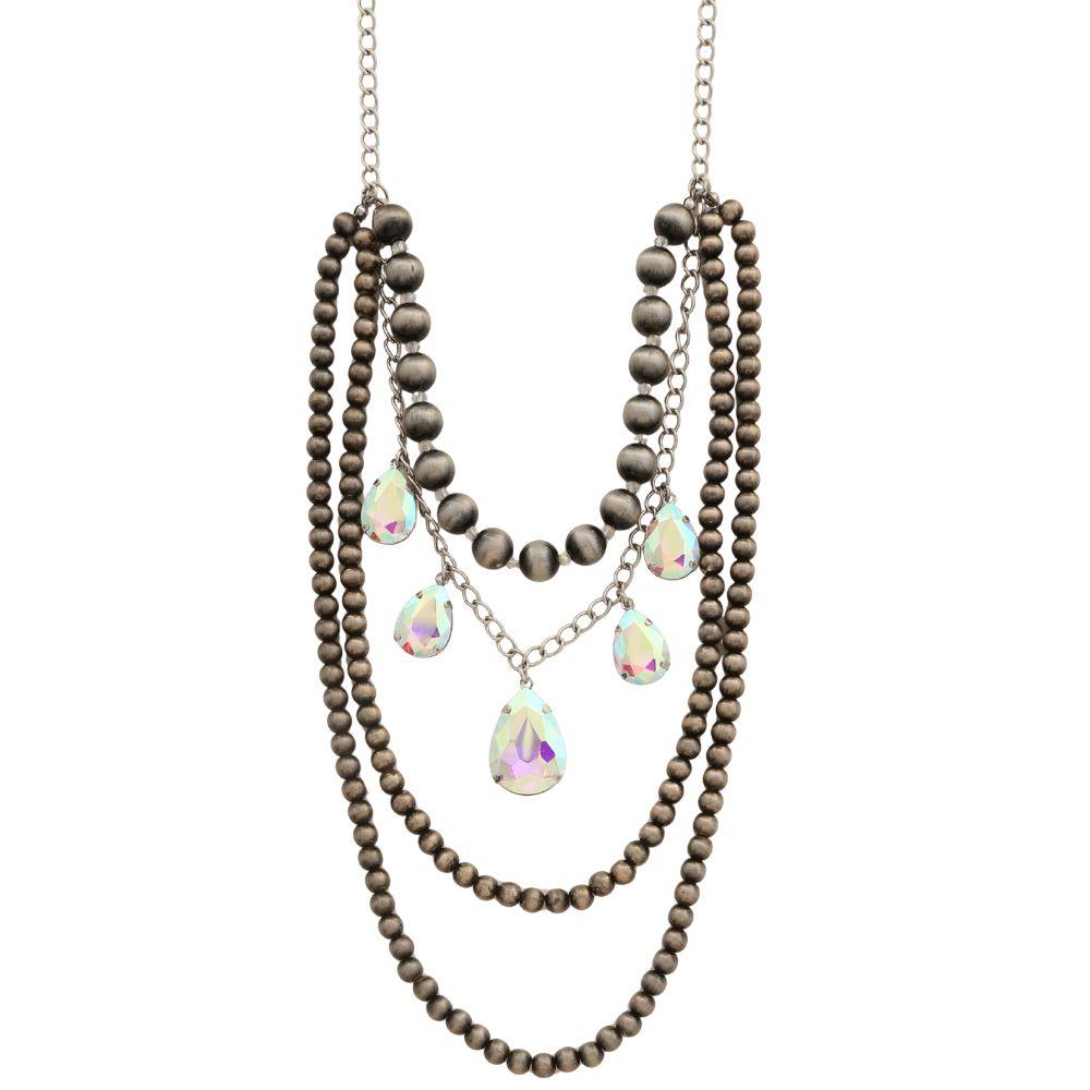 TEARDROP CRYSTAL BEADED LAYERED NECKLACE
