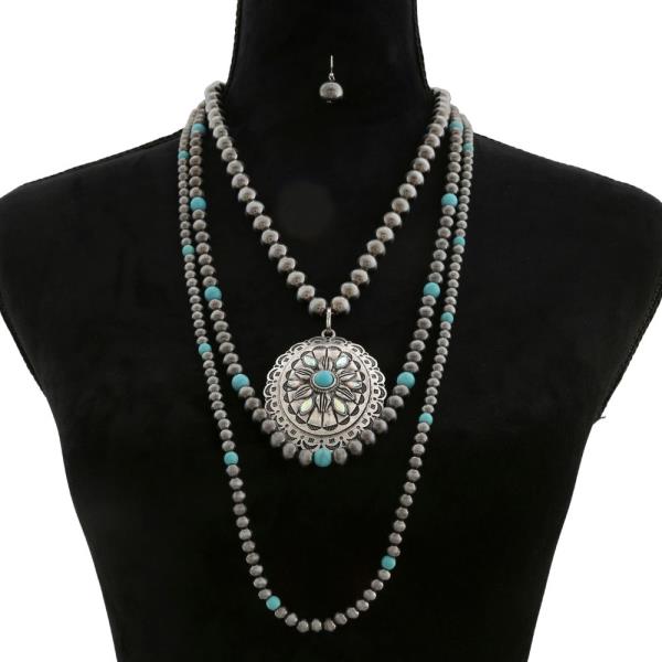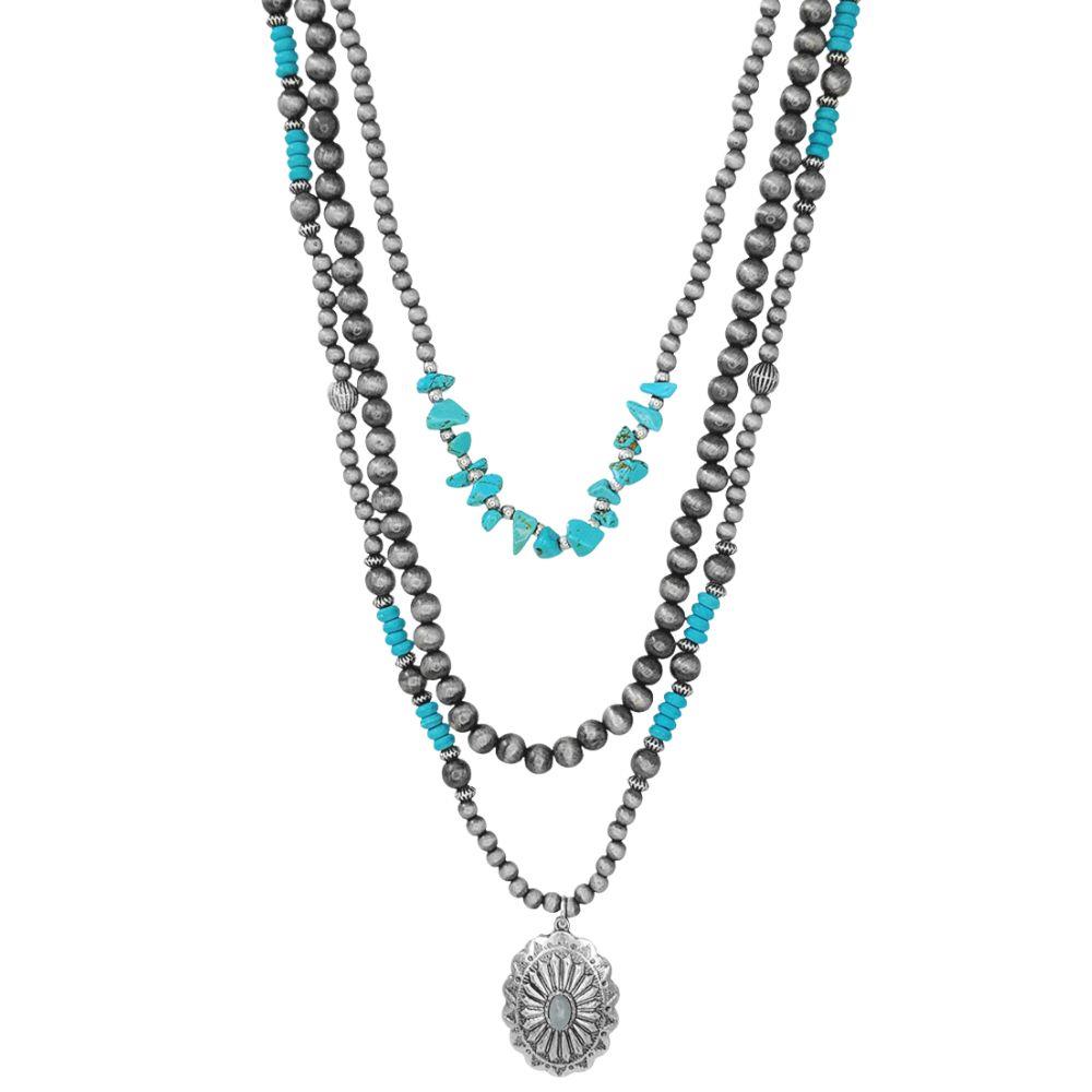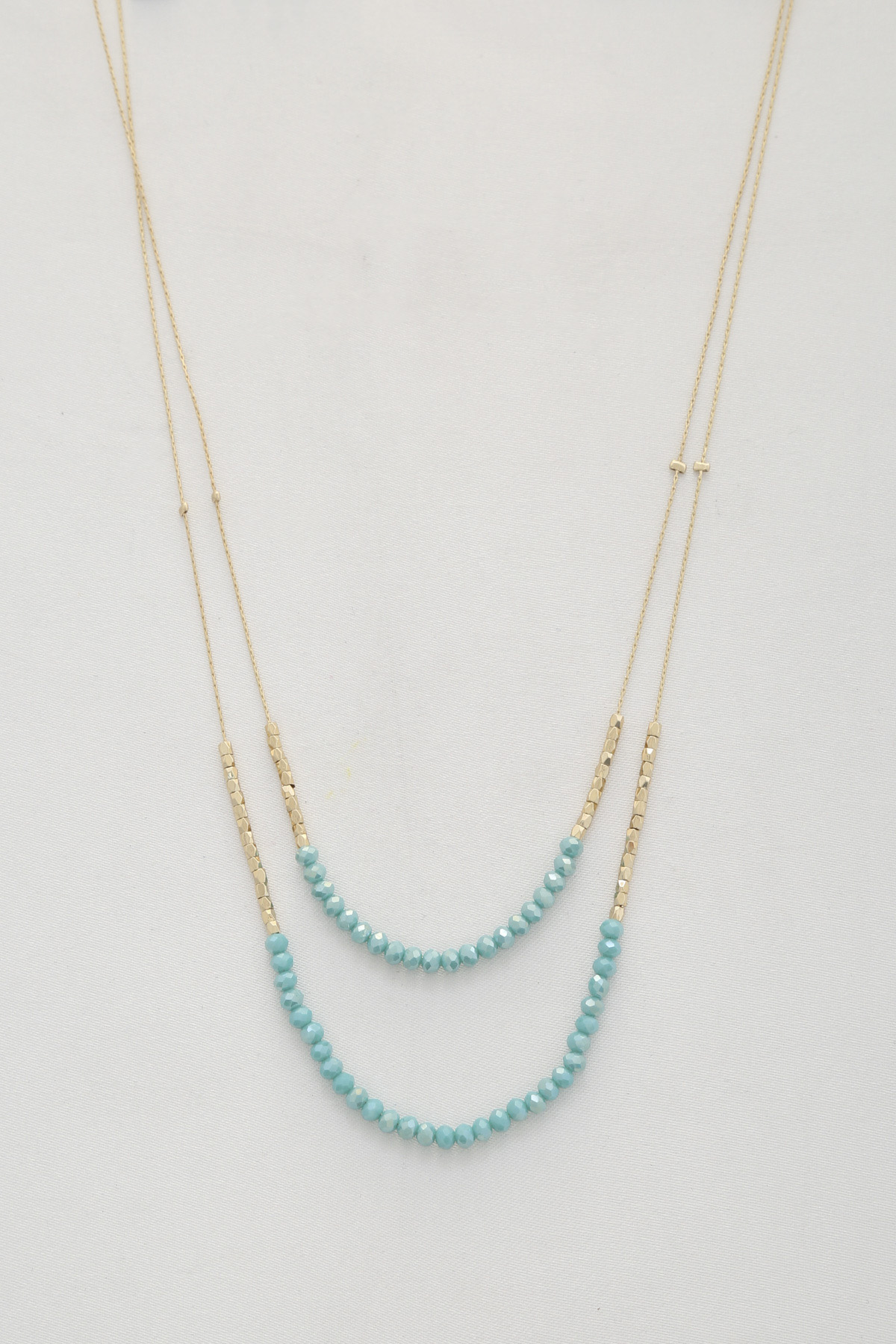 SDJ TURQUOISE BEAD METAL LAYERED NECKLACE