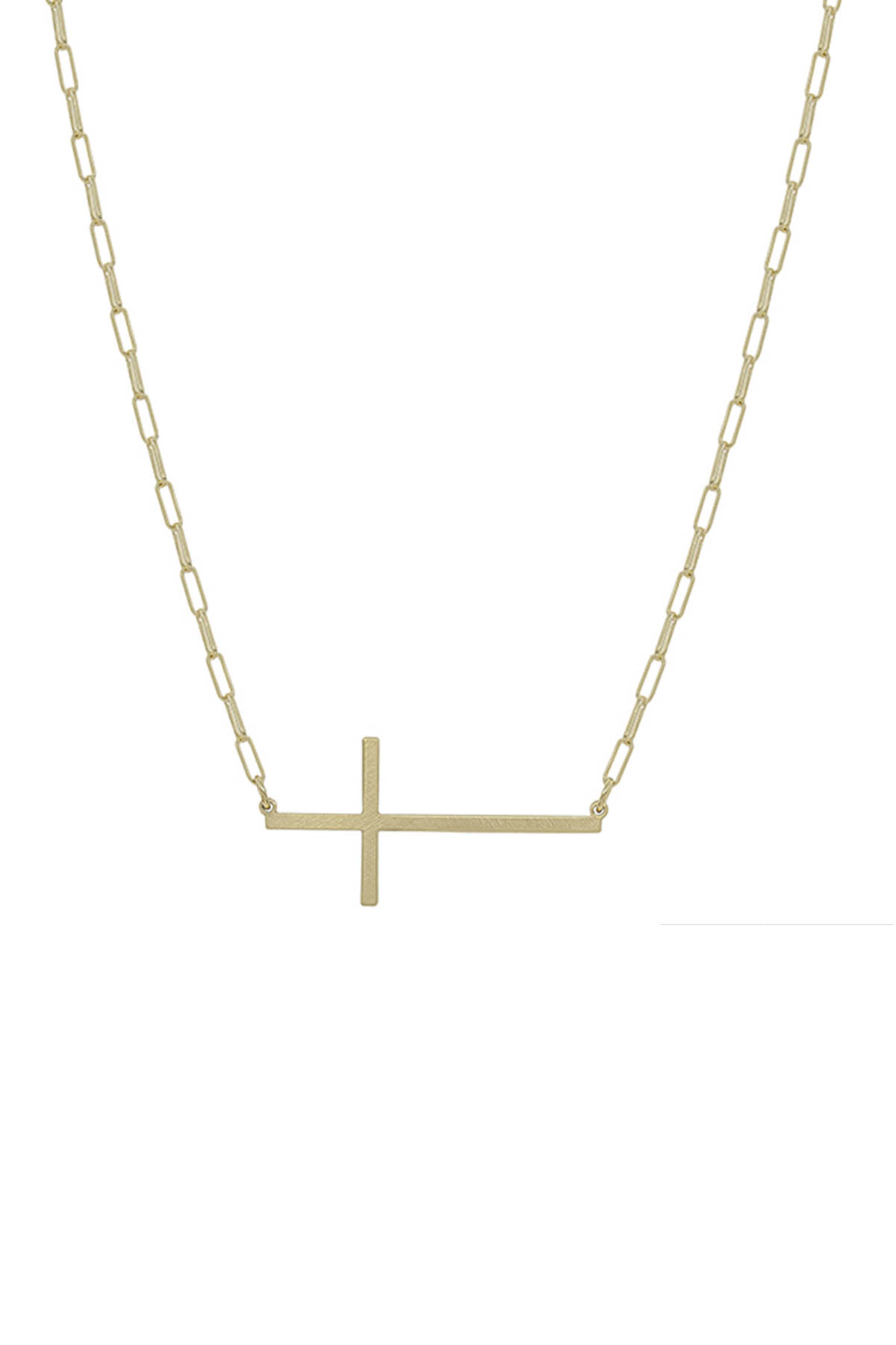SDJ CROSS PENDANT LAYERED METAL NECKLACE