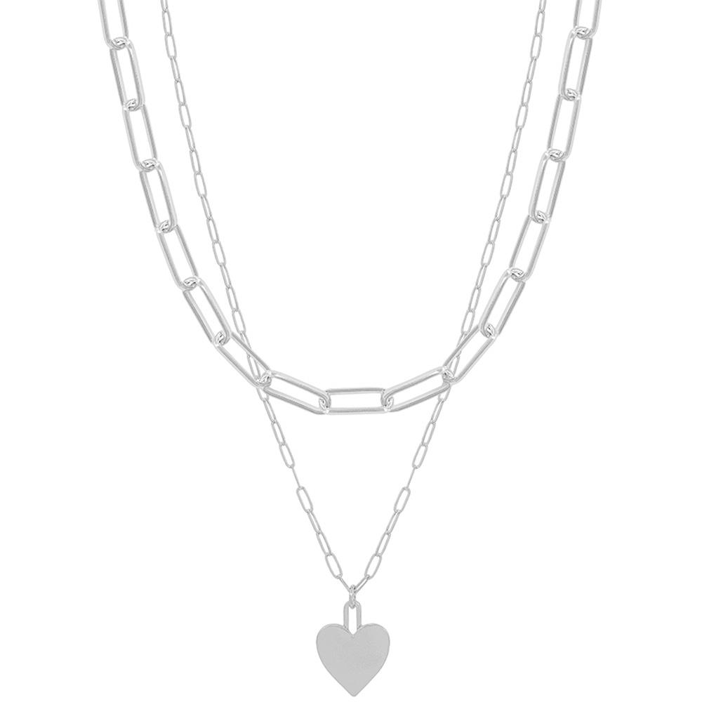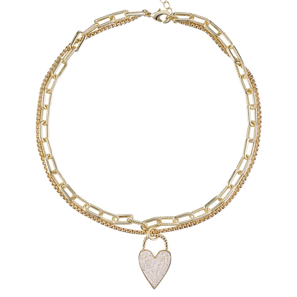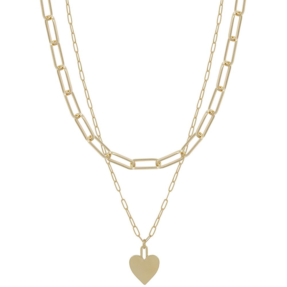 SDJ HEART PENDANT CHAIN LAYERED NECKLACE