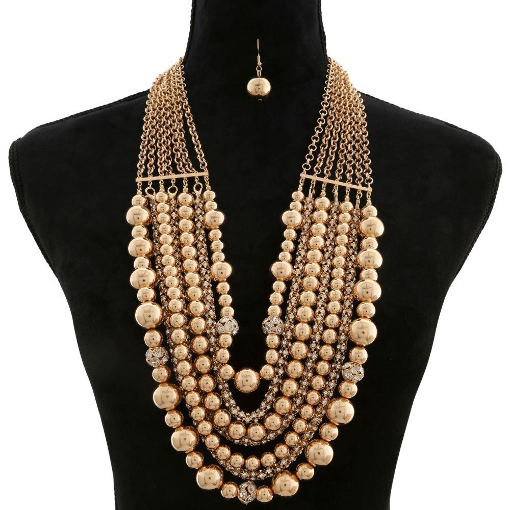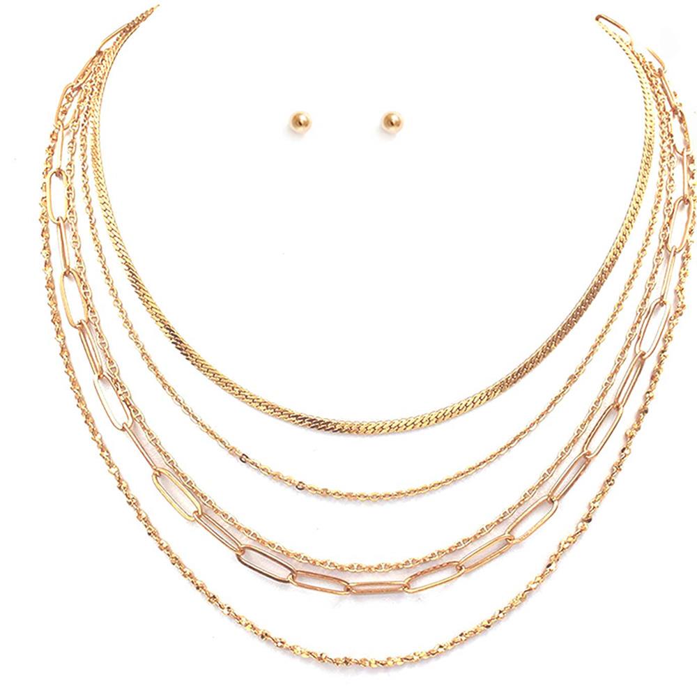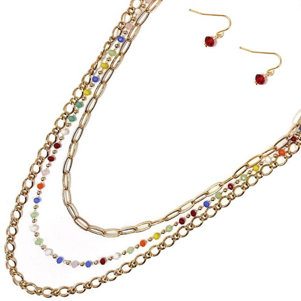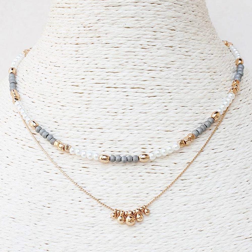 MULTI CHAM BEADED METAL LAYERED NECKLACE
