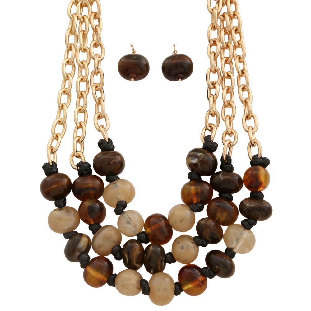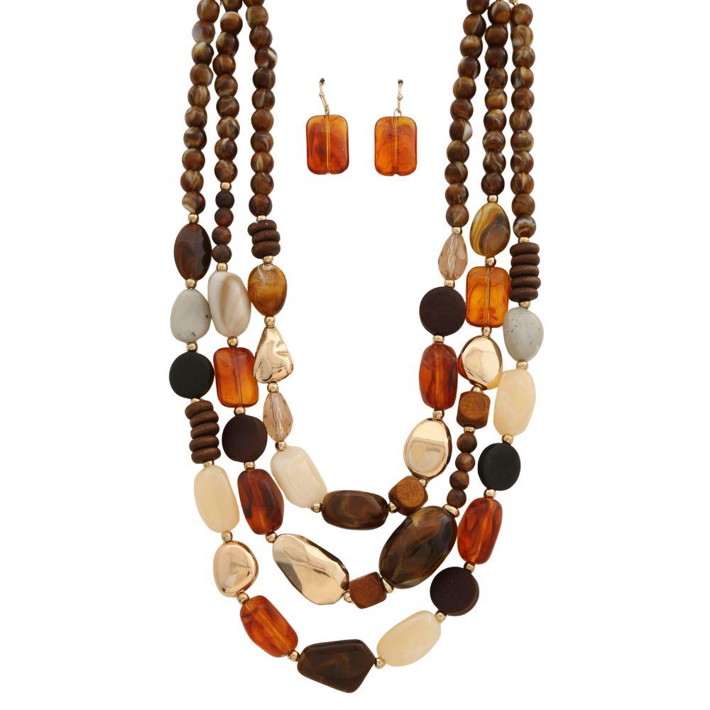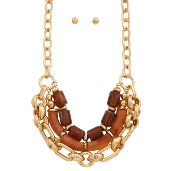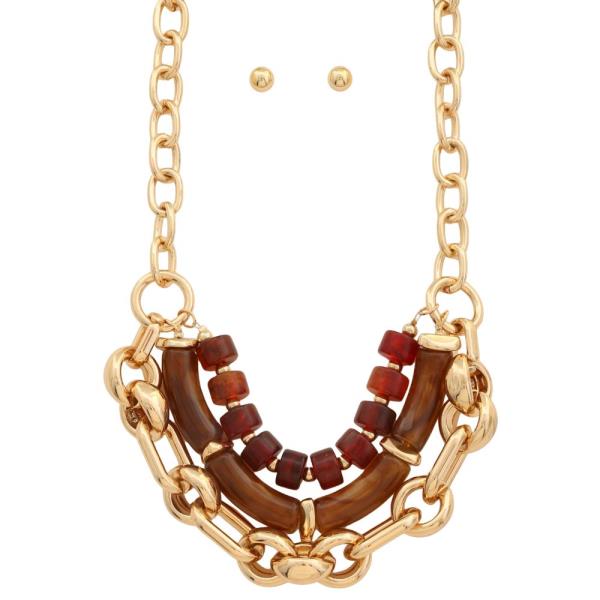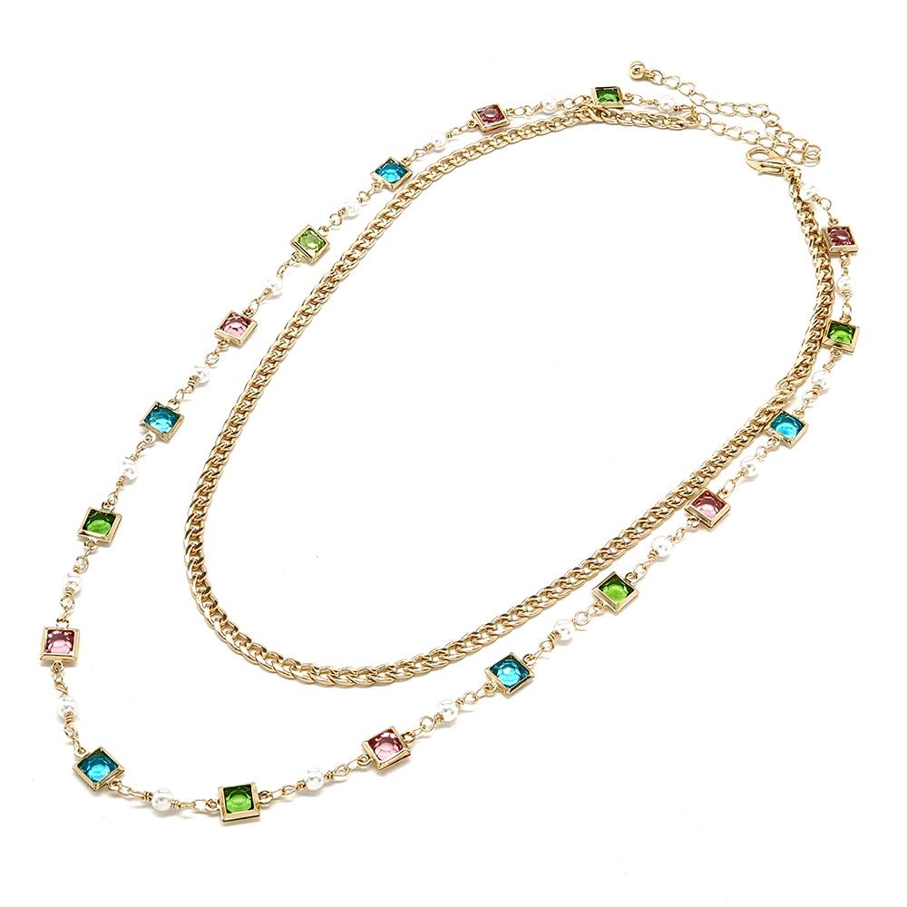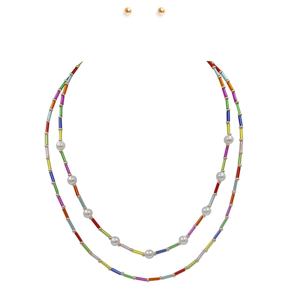MULTI CHAM BEADED METAL LAYERED NECKLACE