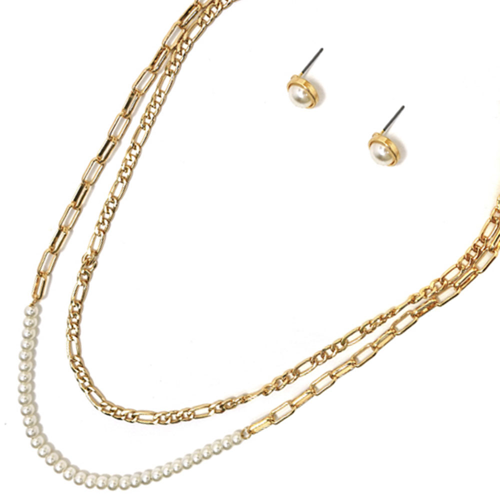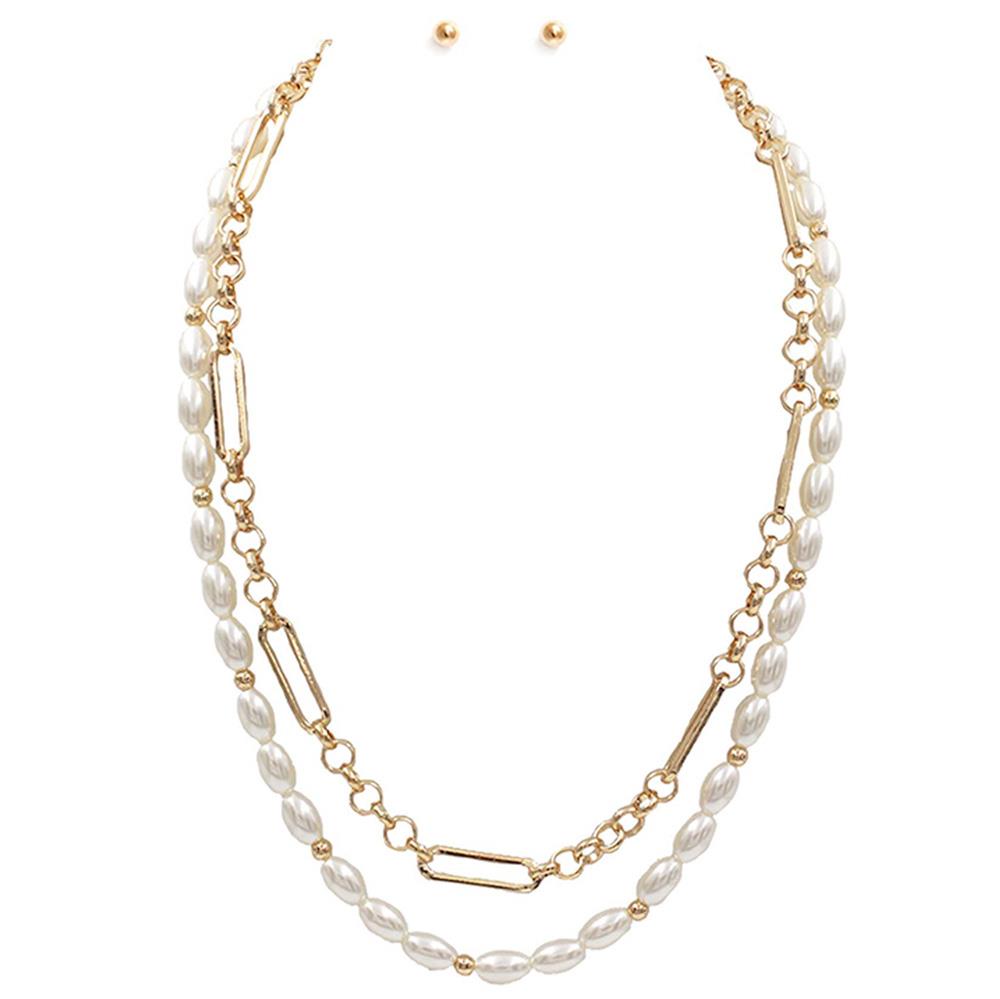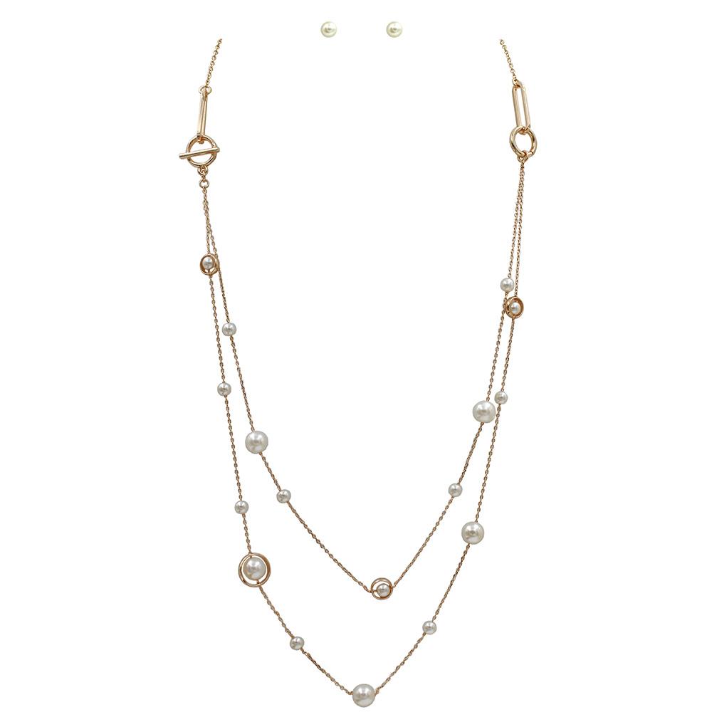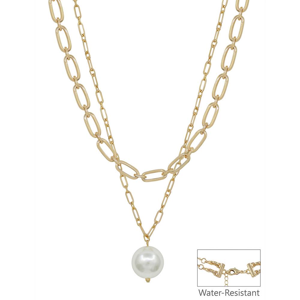 PEARL BEAD STATION METAL LAYERED NECKLACE
