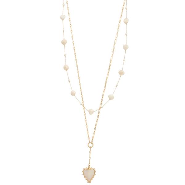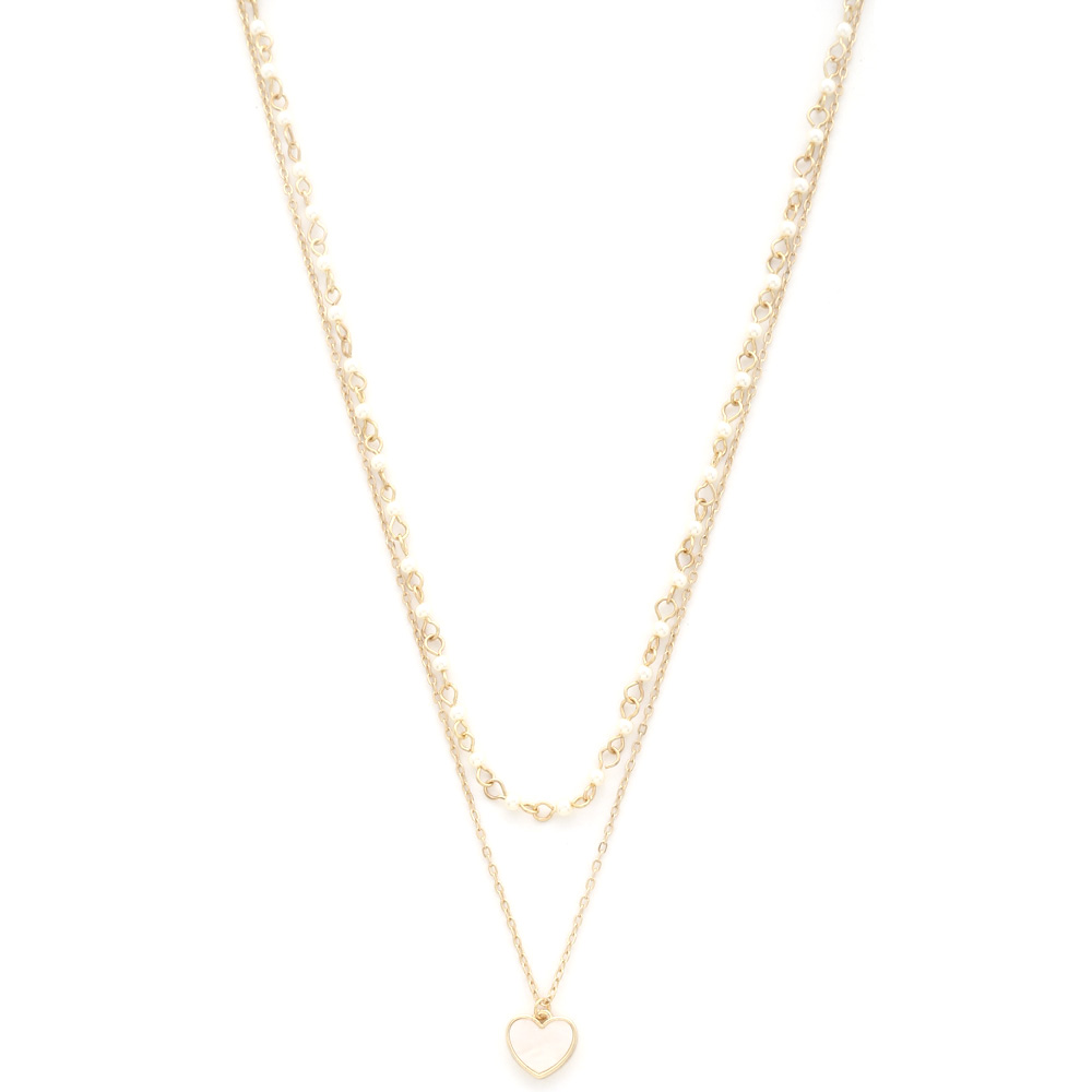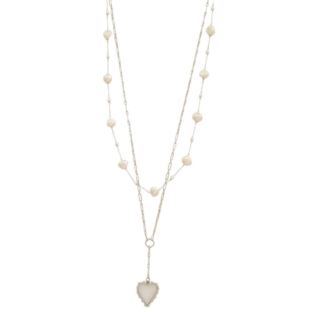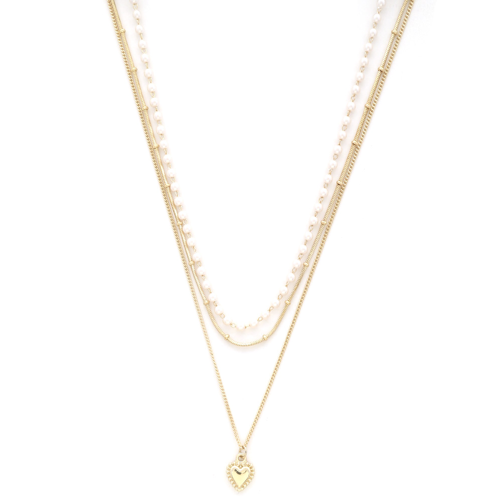SDJ HEART PENDANT PEARL BEAD CHAIN LAYERED NECKLACE