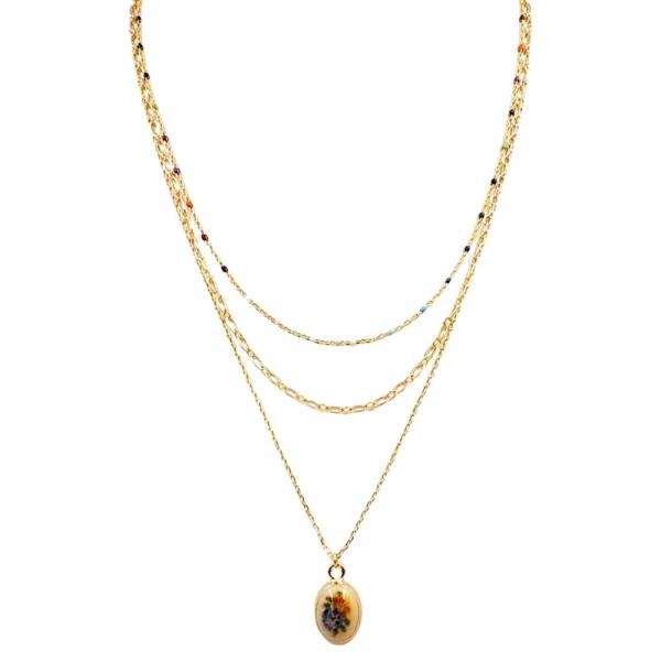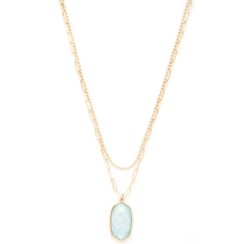 OVAL STONE PENDANT BEADED LAYERED NECKLACE