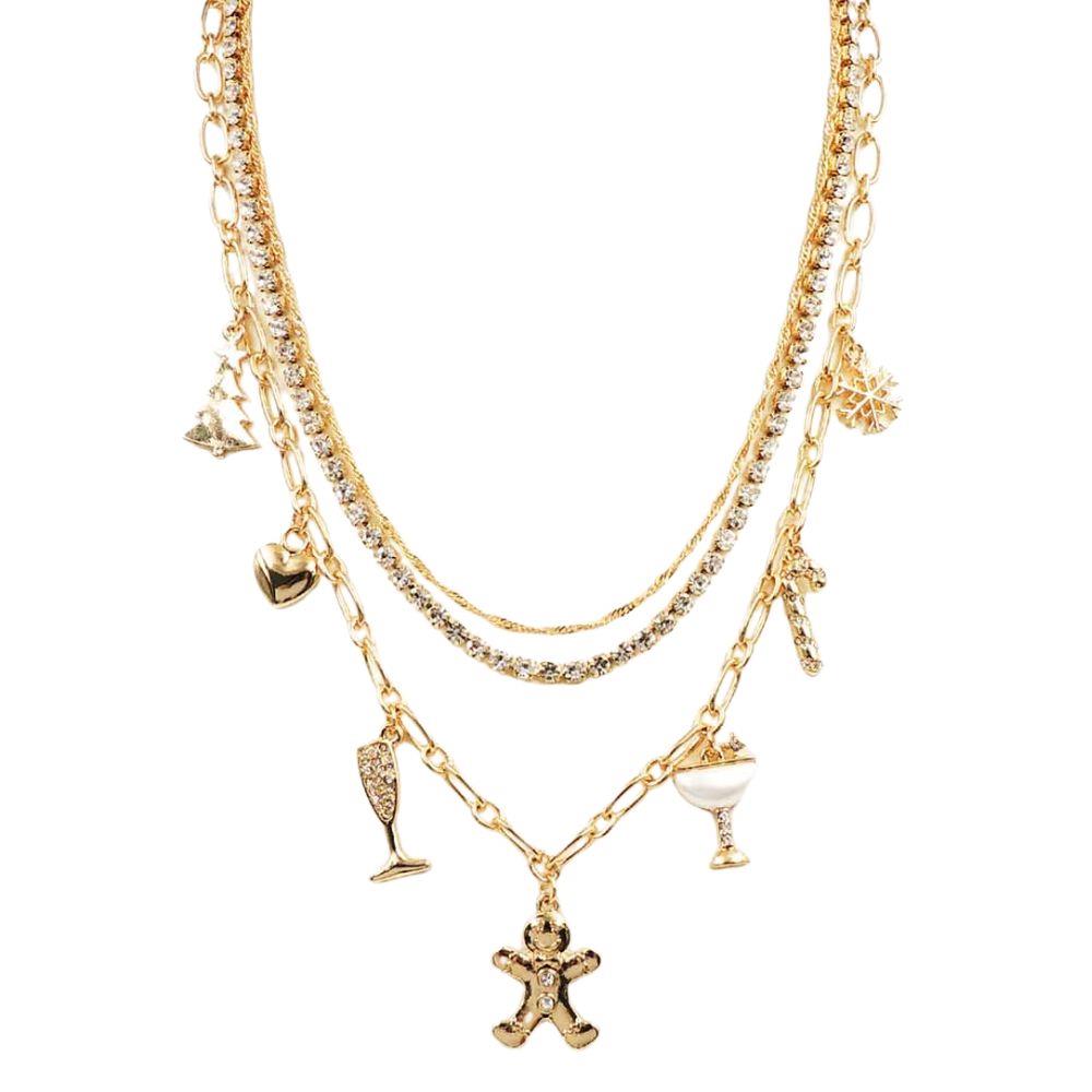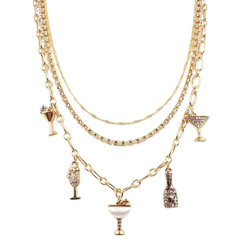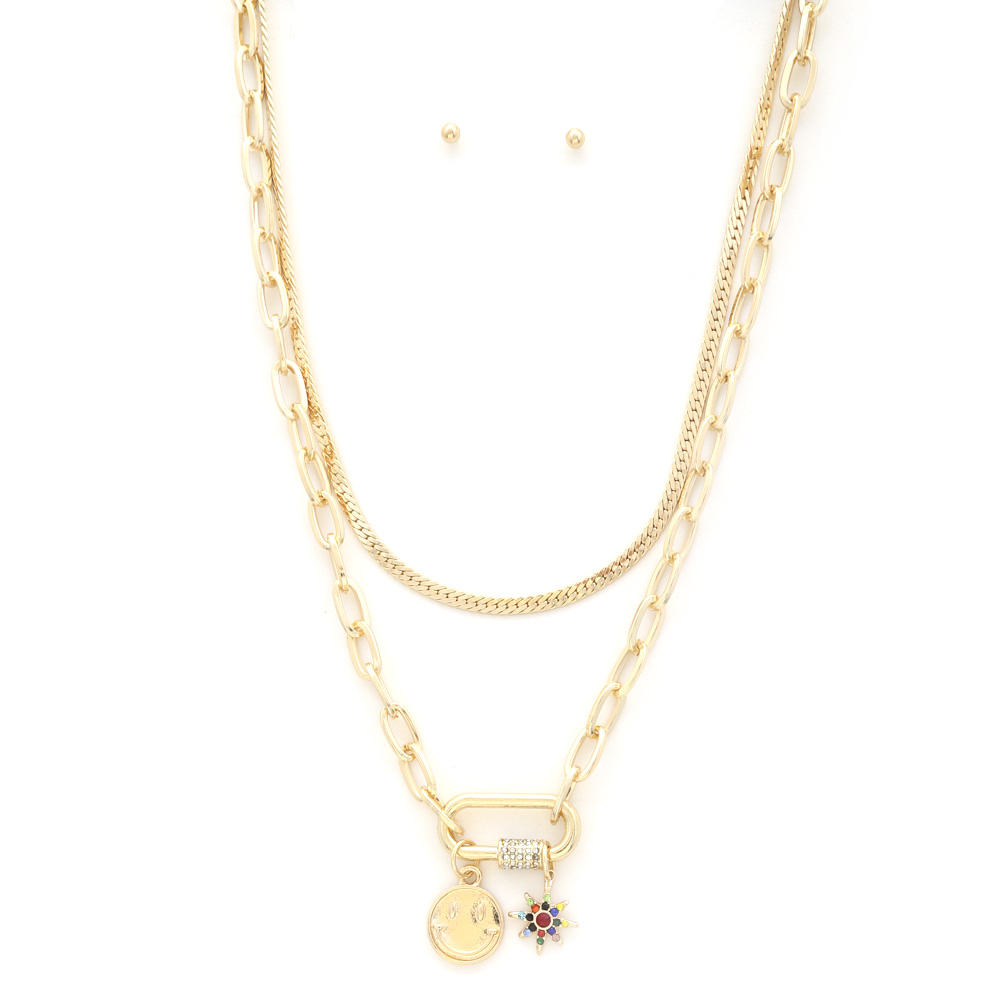 TWO TONE STONE MULTI CHARM LAYERED NECKLACE