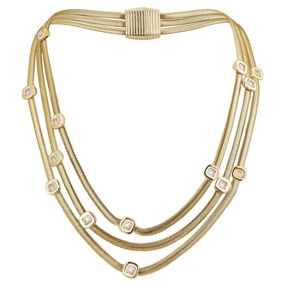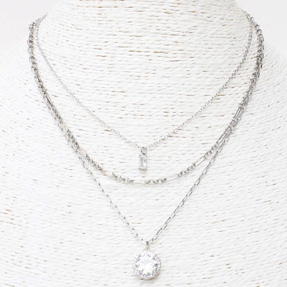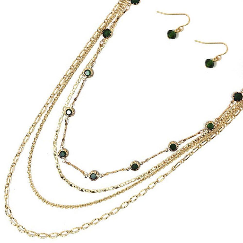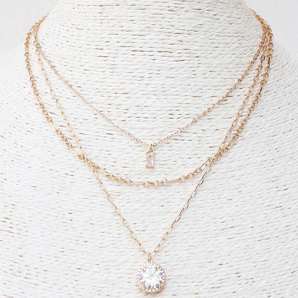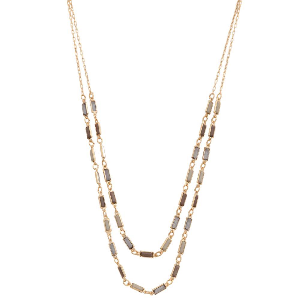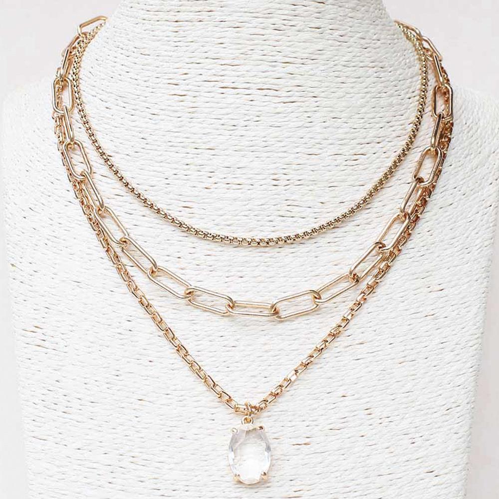 TWO TONE MULTI CHAIN STONE LAYERED NECKLACE