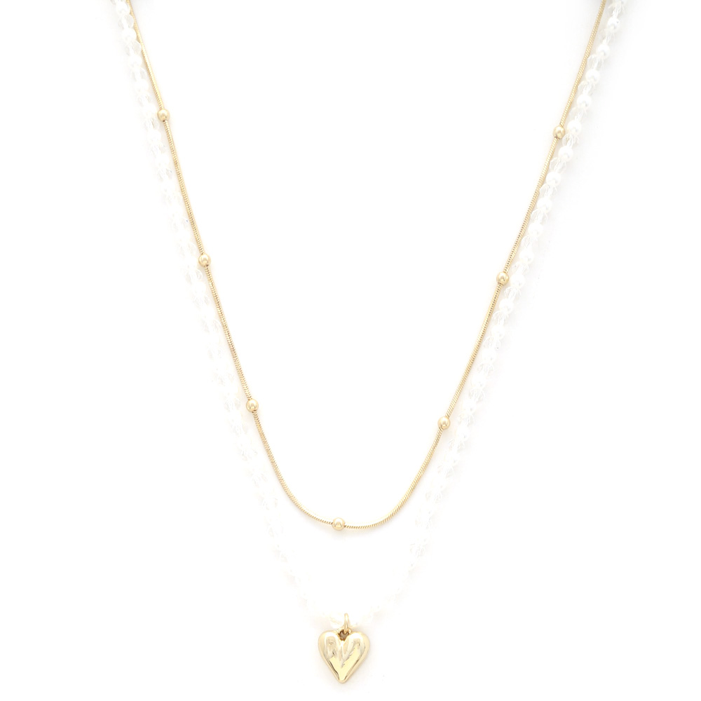 HEART CRYSTAL CHARM BEADED LAYERED NECKLACE