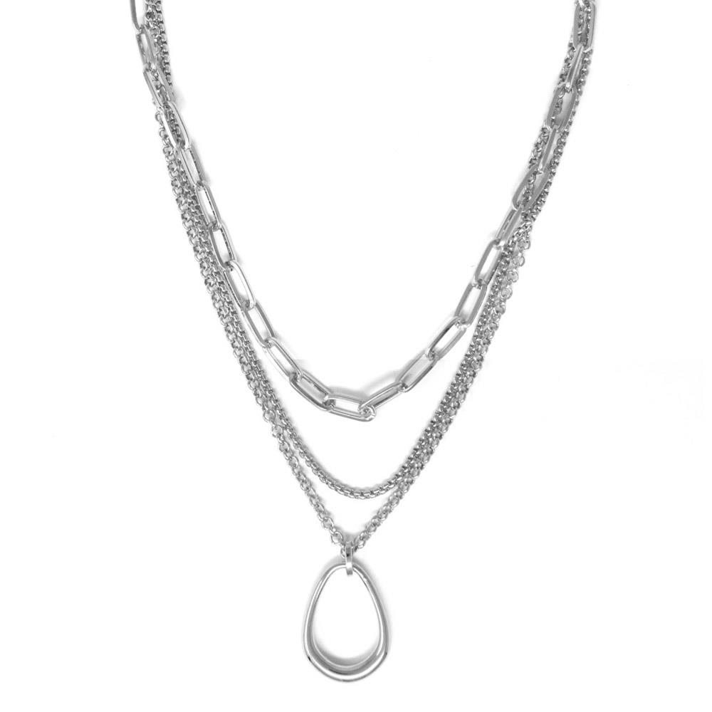 STAINLESS STEEL LAYERED BALL CHAIN AND TEARDROP PENDANT NECKLACE