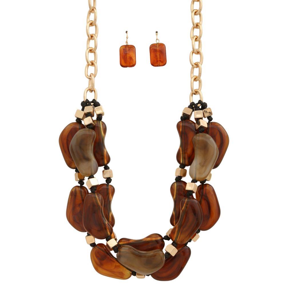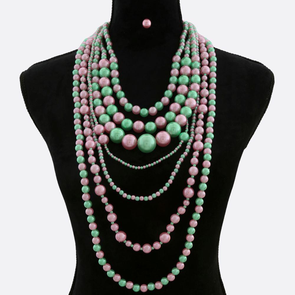 PEARL MULTI LAYER STATEMENT NECKLACE EARRING SET
