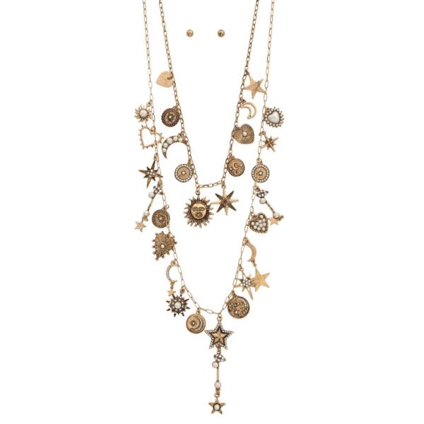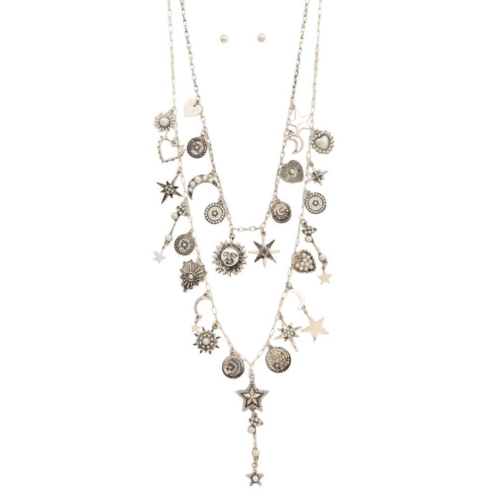 WESTERN TWO TONE MULTI CHARM LAYERED NECKLACE